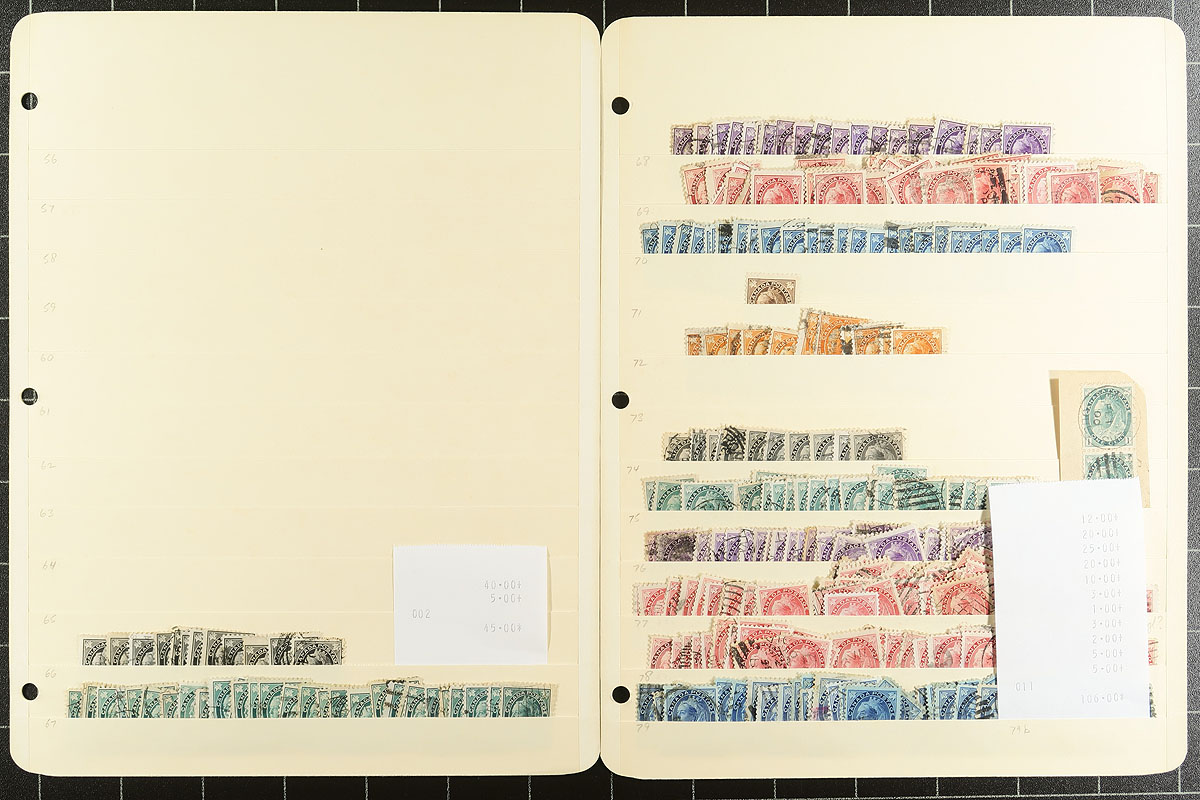 A high-quality old-time stock of early used Canadian material from 1859 "Cents" to the QEII Karsh issue, arranged on 27 manila pages, withing a binder. Loads of value here, and although the odd fault my be present in the earliest material, overall this is a very clean group. Lots of better postmarks noted, and a winters worth of "fly-specking" for the adventurous collector. Cataloged by the previous owner, using only the lowest value given, so plenty of upside to the valuation count. Owner's Unitrade =