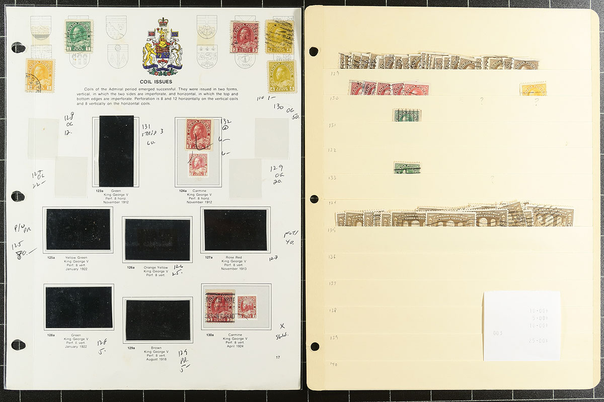 A high-quality old-time stock of early used Canadian material from 1859 "Cents" to the QEII Karsh issue, arranged on 27 manila pages, withing a binder. Loads of value here, and although the odd fault my be present in the earliest material, overall this is a very clean group. Lots of better postmarks noted, and a winters worth of "fly-specking" for the adventurous collector. Cataloged by the previous owner, using only the lowest value given, so plenty of upside to the valuation count. Owner's Unitrade =