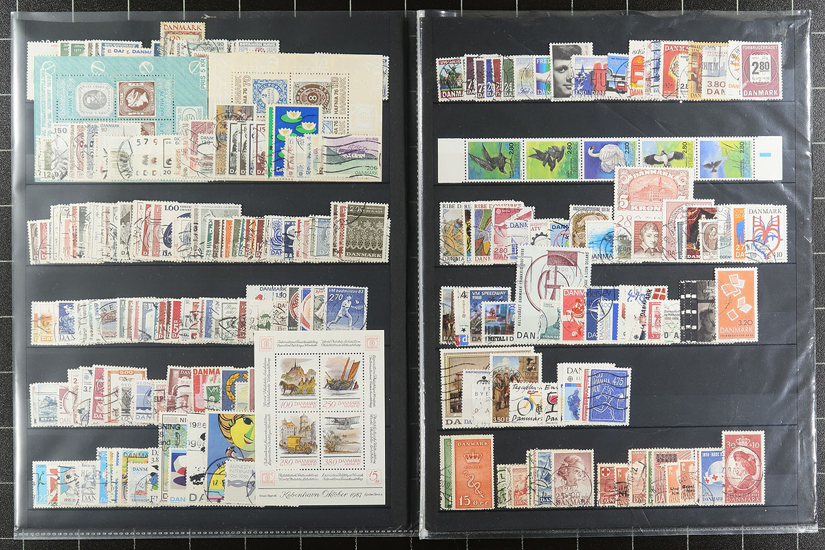 Collection of used Denmark, 1855-2002, containing over 1,200 stamps in roughly 13 stock pages. The collection generally ranges from Scott #4a/1220, along with a few pages of back of the book material, and a few blocks. A spot check indicated a few early stamps cataloguing $10 and up each. Postmark interest includes numerals and cds types, including a few "socked on the nose" town cancels. A few faults with a few of the stamps, overall fine to very fine. Owner's older 2014 Scott US$912.00 =