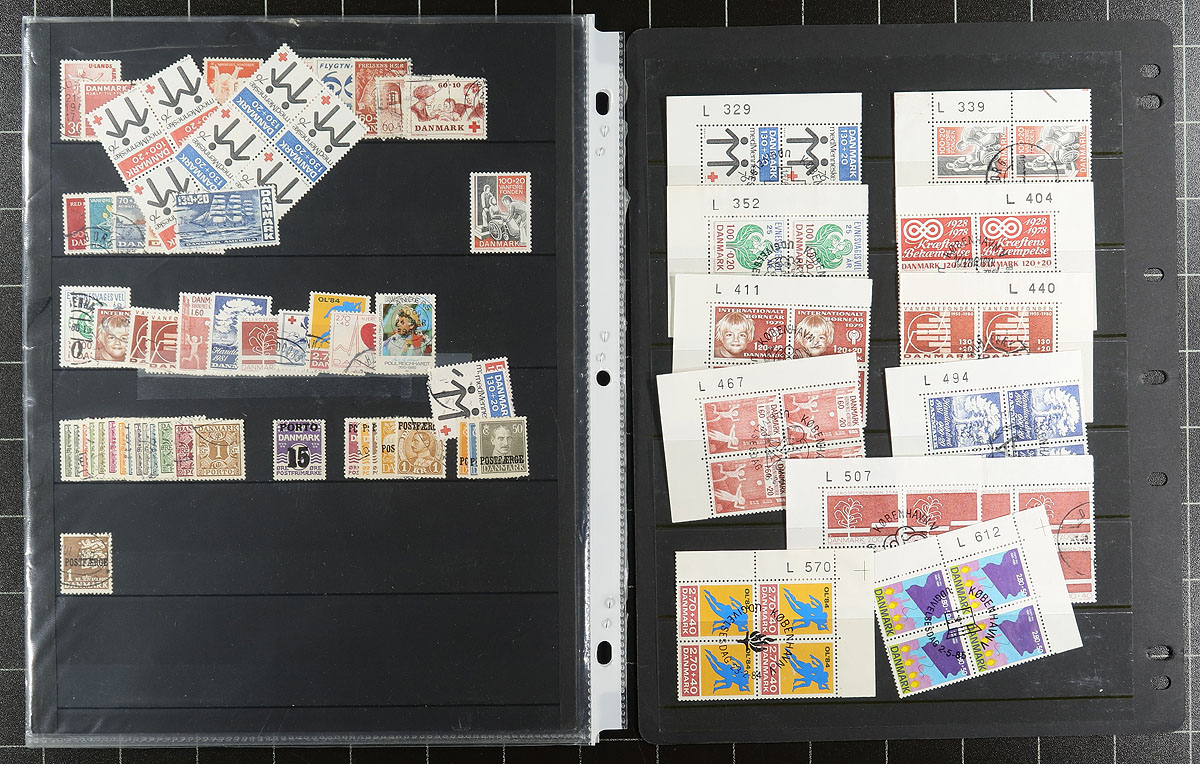 Collection of used Denmark, 1855-2002, containing over 1,200 stamps in roughly 13 stock pages. The collection generally ranges from Scott #4a/1220, along with a few pages of back of the book material, and a few blocks. A spot check indicated a few early stamps cataloguing $10 and up each. Postmark interest includes numerals and cds types, including a few "socked on the nose" town cancels. A few faults with a few of the stamps, overall fine to very fine. Owner's older 2014 Scott US$912.00 =