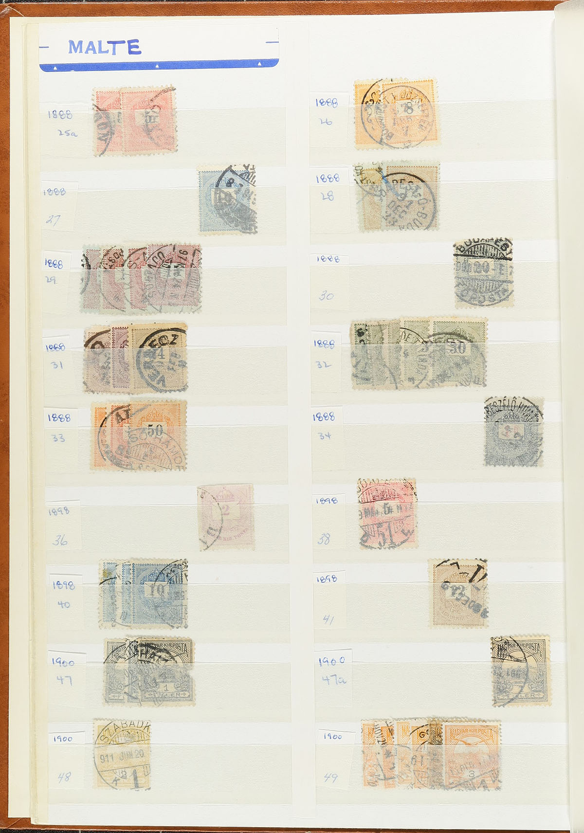 Collection / accumulation of used Hungary, 1871-1971, containing a few thousand stamps in 2 stockbooks and a binder. The stockbooks contain a few thousand stamps, generally ranging from Scott #9/2074, all neatly organized by Scott number, with duplication ranging from 2 to 5 for most issues. Postmark interest includes cds types, including many "socked on the nose town" cancels. The binder contains roughly 500 stamps on and off piece from the 1960's, noting pictorial, first day, or exhibition postmark types. A nice lot for the Hungary or worldwide postmark hunter. Overall fine to very fine. Estimate =