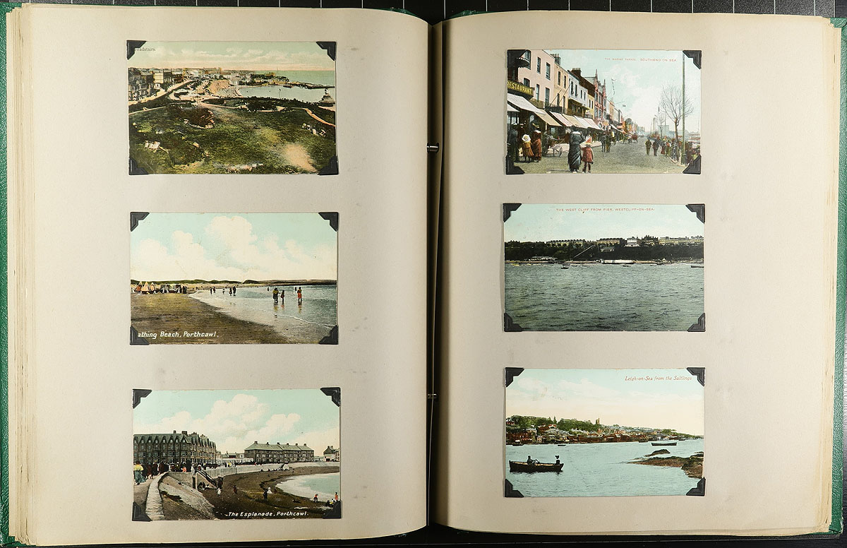 Family Postcard Collection Part D. The fourth and final installment of this family holding, this time housed in an overside "Scrap Book" with postcards held in-place with photo corners. A total of 156 postcards which take an international journey, starting in the UK then venturing to Canada, Netherlands, France, Germany, China, Norway, USA and Malta (and likely a few others we didn't note). Many better postcards noted, a few have been cut down a bit (to make for uniform sizing), mentioned "for the record". Offered as received, as one of four lots, all in this sale from the same family. Estimate =