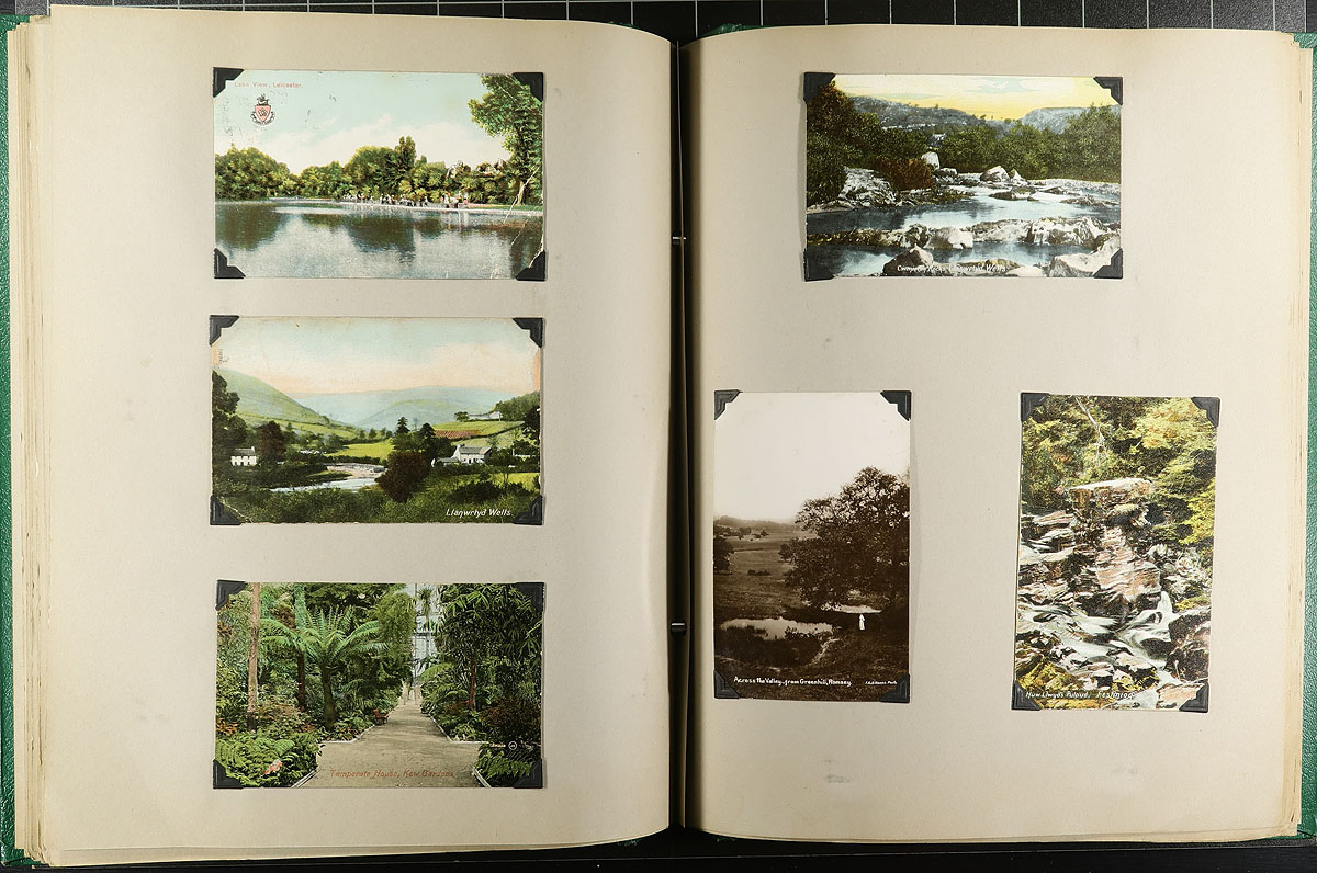 Family Postcard Collection Part D. The fourth and final installment of this family holding, this time housed in an overside "Scrap Book" with postcards held in-place with photo corners. A total of 156 postcards which take an international journey, starting in the UK then venturing to Canada, Netherlands, France, Germany, China, Norway, USA and Malta (and likely a few others we didn't note). Many better postcards noted, a few have been cut down a bit (to make for uniform sizing), mentioned "for the record". Offered as received, as one of four lots, all in this sale from the same family. Estimate =