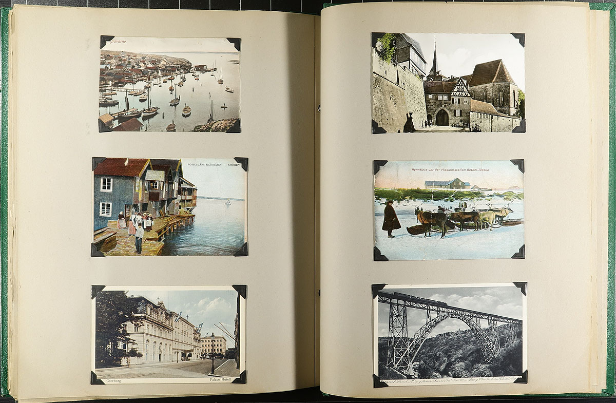 Family Postcard Collection Part D. The fourth and final installment of this family holding, this time housed in an overside "Scrap Book" with postcards held in-place with photo corners. A total of 156 postcards which take an international journey, starting in the UK then venturing to Canada, Netherlands, France, Germany, China, Norway, USA and Malta (and likely a few others we didn't note). Many better postcards noted, a few have been cut down a bit (to make for uniform sizing), mentioned "for the record". Offered as received, as one of four lots, all in this sale from the same family. Estimate =
