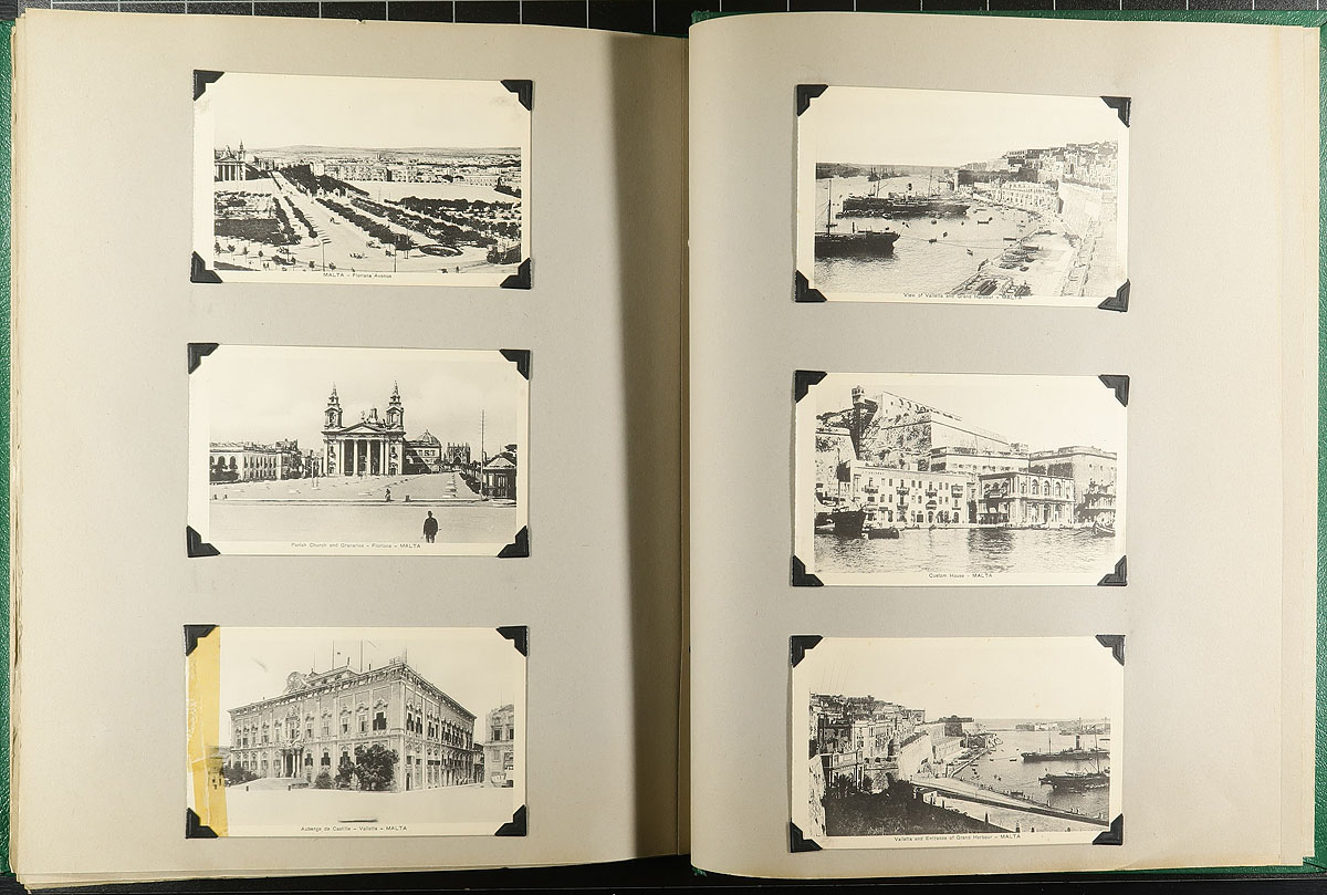 Family Postcard Collection Part D. The fourth and final installment of this family holding, this time housed in an overside "Scrap Book" with postcards held in-place with photo corners. A total of 156 postcards which take an international journey, starting in the UK then venturing to Canada, Netherlands, France, Germany, China, Norway, USA and Malta (and likely a few others we didn't note). Many better postcards noted, a few have been cut down a bit (to make for uniform sizing), mentioned "for the record". Offered as received, as one of four lots, all in this sale from the same family. Estimate =
