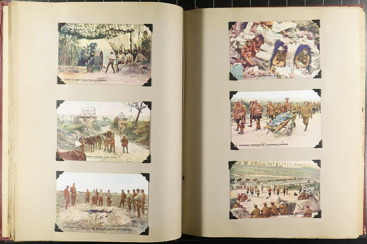 Family Postcard Collection Part C. The third installment of this family holding, this time housed in an overside "Scrap Book" with postcards held in-place with photo corners. A total of 190 postcards, which follow a very interesting "topical" theme. In order of appearance, this album features "Royals", Military Figures, Funeral of Edward VII, Soldiers / WWI Scenes, Ships and Early Airplanes. Offered as received, as one of four lots, all in this sale from the same family. This one being the "crown jewel" of the holding. Estimate =