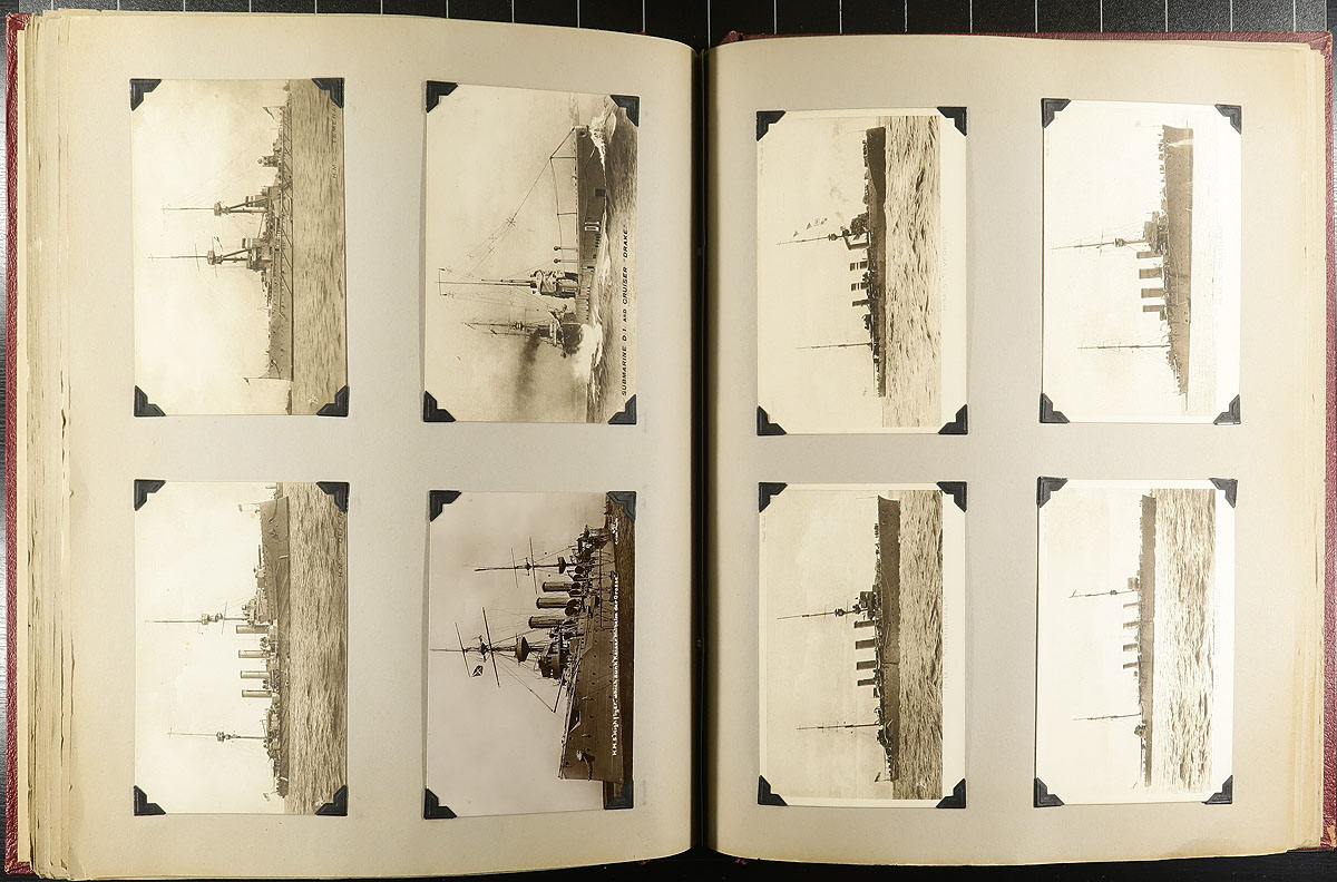 Family Postcard Collection Part C. The third installment of this family holding, this time housed in an overside "Scrap Book" with postcards held in-place with photo corners. A total of 190 postcards, which follow a very interesting "topical" theme. In order of appearance, this album features "Royals", Military Figures, Funeral of Edward VII, Soldiers / WWI Scenes, Ships and Early Airplanes. Offered as received, as one of four lots, all in this sale from the same family. This one being the "crown jewel" of the holding. Estimate =