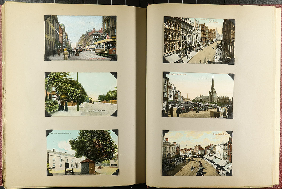 Family Postcard Collection Part B. The second installment of this family holding, this time housed in an overside "Scrap Book" with postcards held in-place with photo corners. A total of 194 postcards, this one clearly themed in "British" views, starting in London and then travelling around Britain. Of particular note are the MANY high-quality RPPC (real photo postcards) and street / village scenes. Offered as received, as one of four lots, all in this sale from the same family. Estimate =