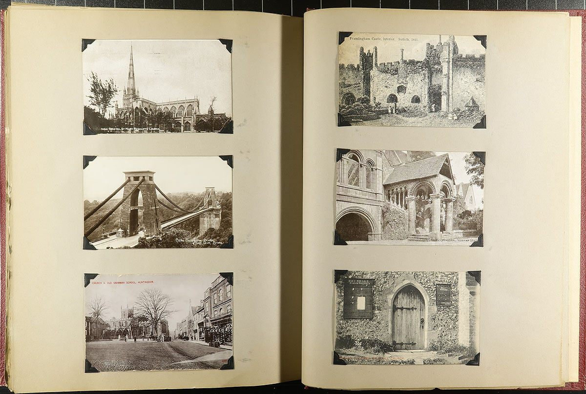 Family Postcard Collection Part B. The second installment of this family holding, this time housed in an overside "Scrap Book" with postcards held in-place with photo corners. A total of 194 postcards, this one clearly themed in "British" views, starting in London and then travelling around Britain. Of particular note are the MANY high-quality RPPC (real photo postcards) and street / village scenes. Offered as received, as one of four lots, all in this sale from the same family. Estimate =