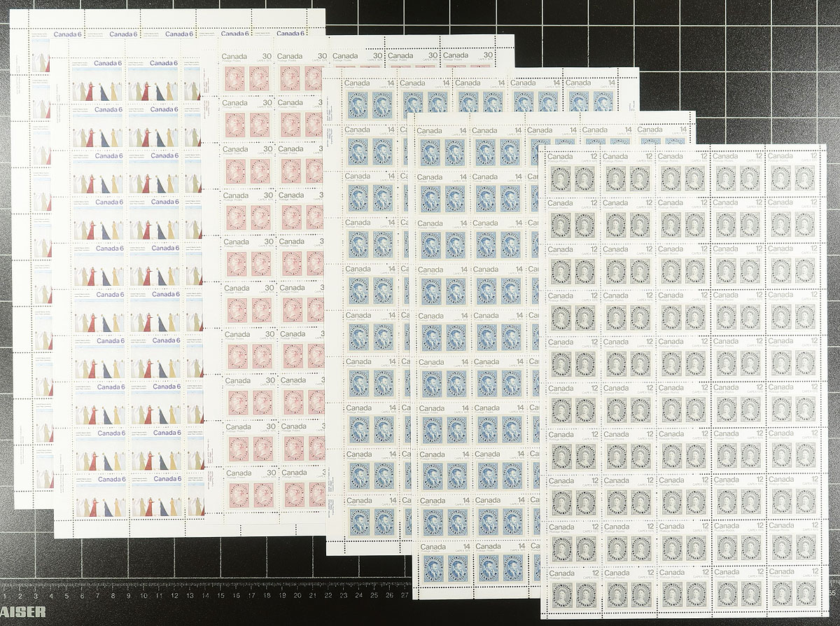 Mint Sheet Potpourri. A clean assortment of mostly 1960's-1980's complete sheets, miniature panes, including some of the tougher larger format sheets of 100 stamps. All neatly confined within a sheet file folder. Conservatively valued for the total face / postage value only. Total face value =