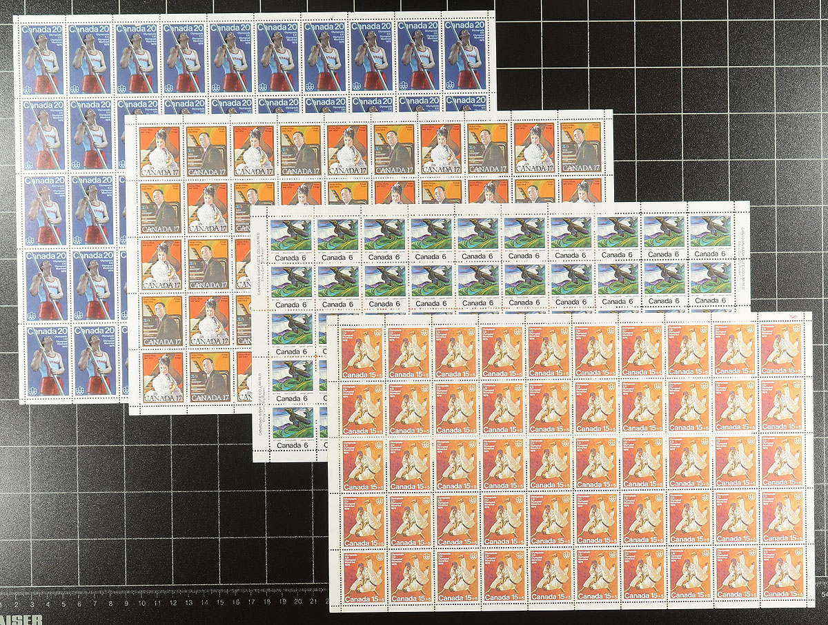 Mint Sheet Potpourri. A clean assortment of mostly 1960's-1980's complete sheets, miniature panes, including some of the tougher larger format sheets of 100 stamps. All neatly confined within a sheet file folder. Conservatively valued for the total face / postage value only. Total face value =