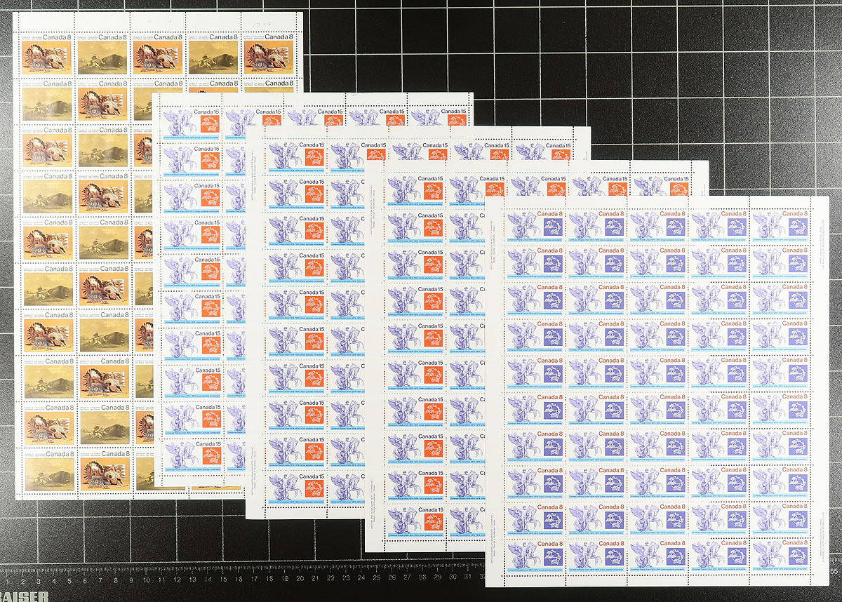 Mint Sheet Potpourri. A clean assortment of mostly 1960's-1980's complete sheets, miniature panes, including some of the tougher larger format sheets of 100 stamps. All neatly confined within a sheet file folder. Conservatively valued for the total face / postage value only. Total face value =