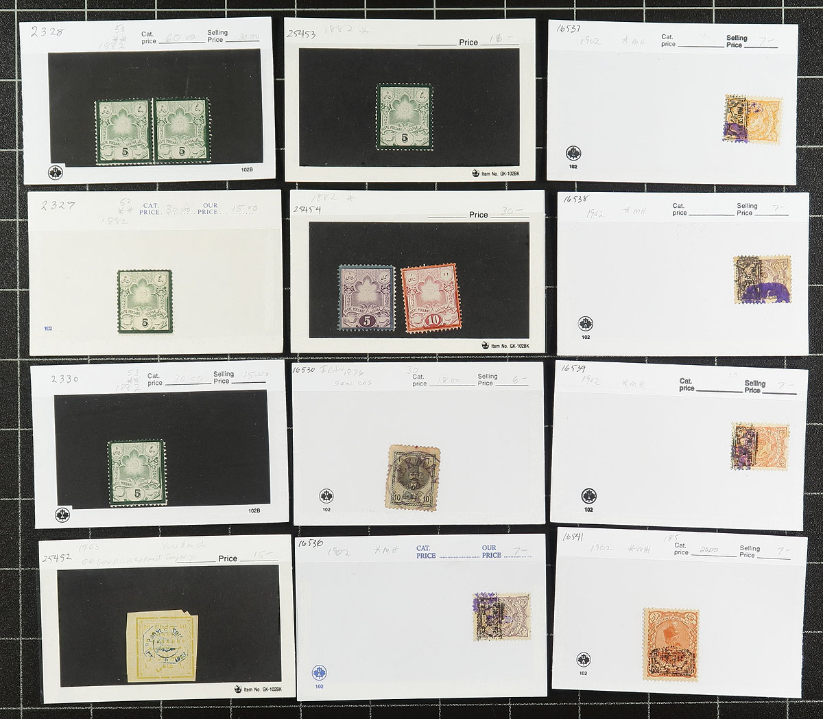 An interesting and potential laden offering of 39x "102" cards, each with early Iranian / Persian issues. While many of these stamps are assessed substantial catalogue value, plenty of forgeries are known to exist, so use a critical eye on the images. A wonderful opportunity to engulf yourself in learning about / identifying these early issues. These are priced by the previous owner at $611.00 (and note, that is show/retail price, only a fraction of the given catalogue value). Estimate =