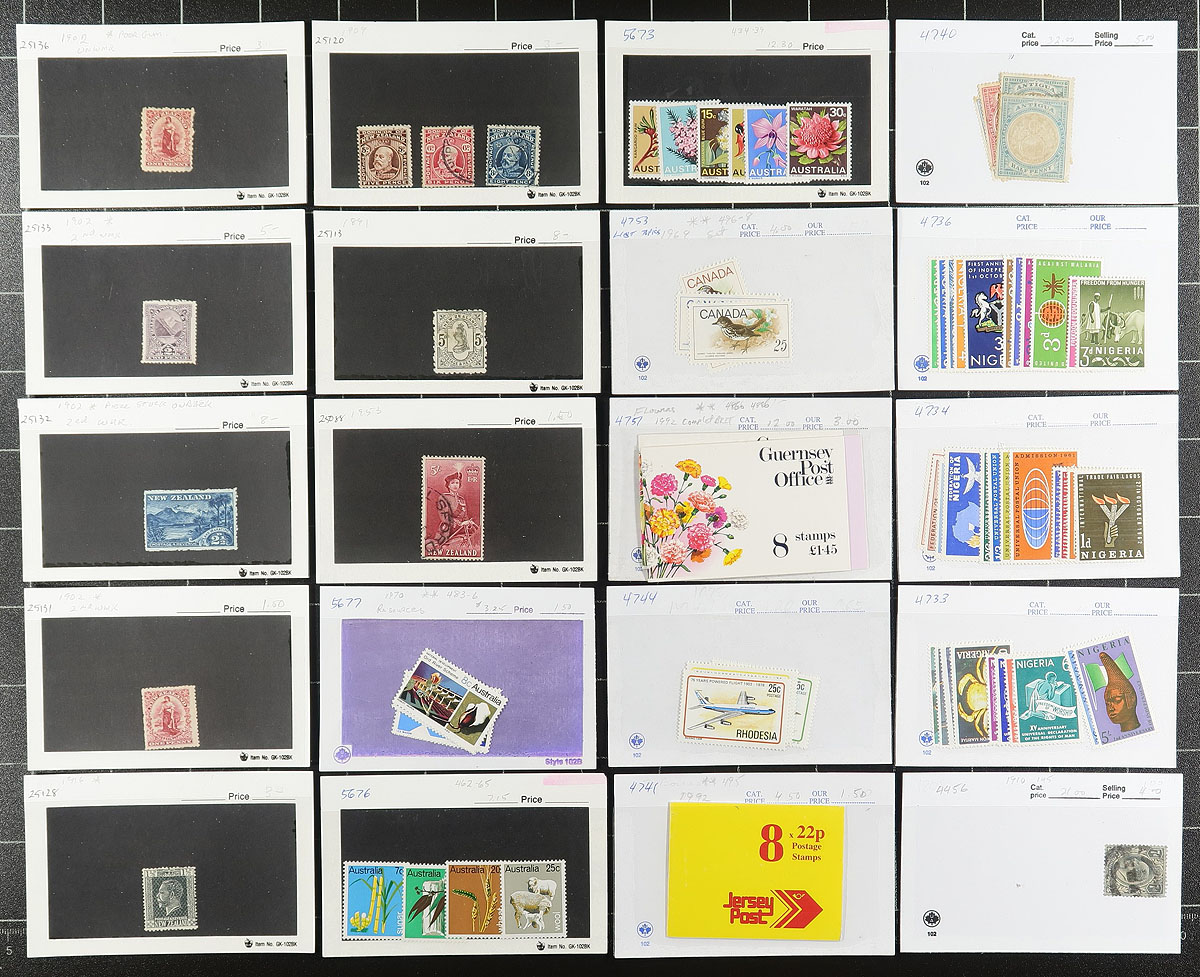 A bundle of 100 "102" cards, all with British Commonwealth singles, sets or assemblies. Each priced between $1-$10 each (with a few higher), which is the retail pricing (rather than the catalogue value). Noted strength in Australia, New Zealand and Malta, with both mint and used throughout. Estimate =
