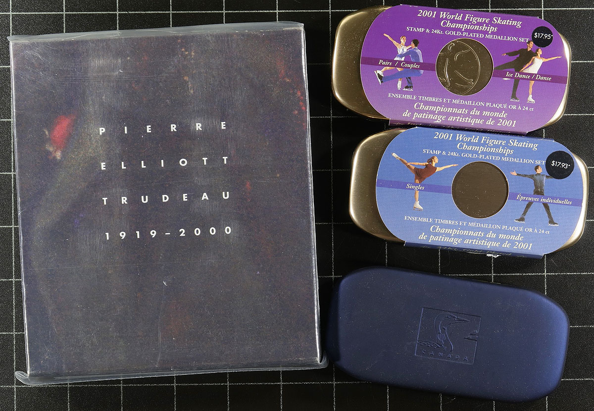 Thematic Collections #95, 104a, 104b, 107. A quartet of tougher to find Canada Post 2000/2001 issued Thematic Collections, including the 2000 issued 2001 Coin/Stamp set, 2001 Trudeau Commemorative Tribute and 2001 World Figure Skating stamp/medallion sets (both "singles" and "doubles" as issued). Issued in small quantities, these Unitrade listed collections are getting tougher to find. 2025/2026 Unitrade =
