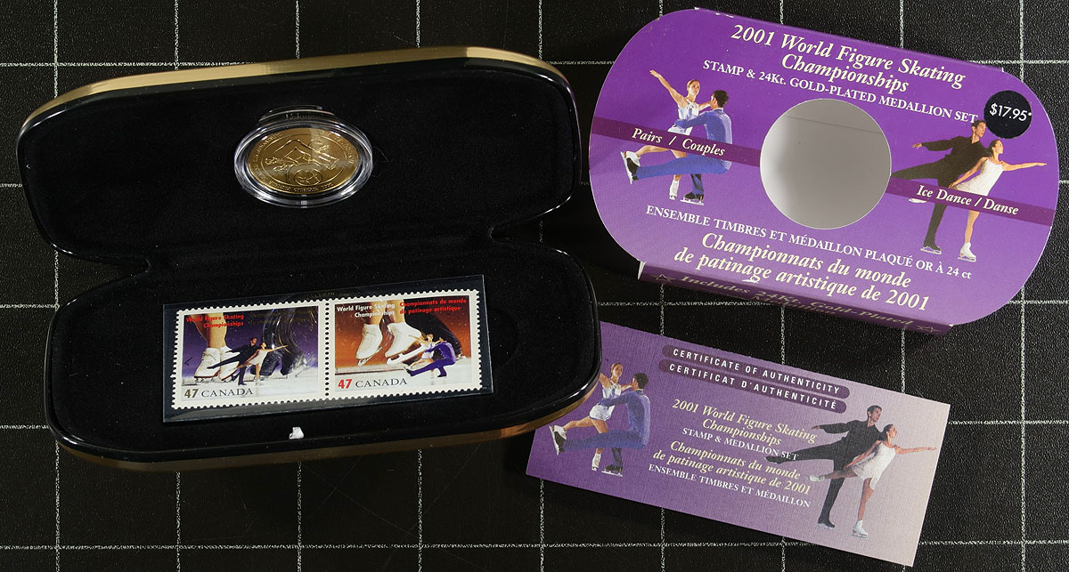 Thematic Collections #95, 104a, 104b, 107. A quartet of tougher to find Canada Post 2000/2001 issued Thematic Collections, including the 2000 issued 2001 Coin/Stamp set, 2001 Trudeau Commemorative Tribute and 2001 World Figure Skating stamp/medallion sets (both "singles" and "doubles" as issued). Issued in small quantities, these Unitrade listed collections are getting tougher to find. 2025/2026 Unitrade =