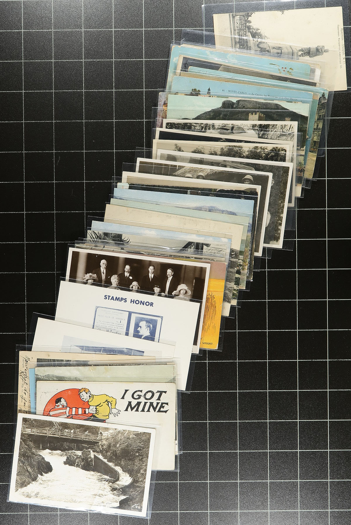 Dealer's Estate Postcard Box. A cardboard "show-box" filled with about 400 postcards, primarily Canada / USA / UK, with a touch of misc Worldwide / Greetings etc. Far better than your usual holding, with almost all being individually sleeved and many priced lightly on the back in pencil (noted many priced at $20+). Take a good look at the sample pictures to get an idea of the quality/contents are. Well worth the reasonable estimate at less than 50c per item. Estimate =