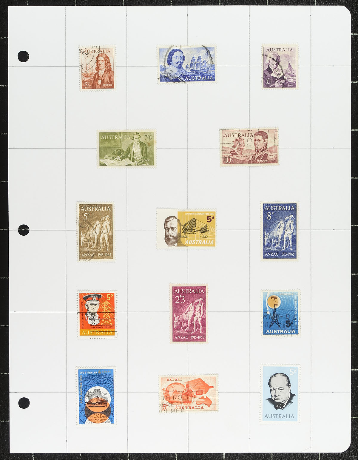 Well organized collection of used Australia, 1913-1998, containing roughly 1,400 stamps on about 100 homemade pages housed in a binder. This well organized collection generally ranges from Scott #1/1705, including a good selection of Kangaroos and KGV Heads, along with singles, sets, and partial sets, with a few cataloguing $10 and up. We estimate roughly 75% completeness in period, and should be continued until complete. Online photos show a sampling, overall fine to very fine. Estimate =