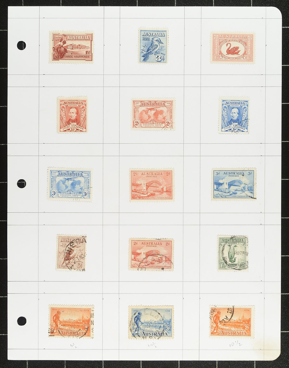 Well organized collection of used Australia, 1913-1998, containing roughly 1,400 stamps on about 100 homemade pages housed in a binder. This well organized collection generally ranges from Scott #1/1705, including a good selection of Kangaroos and KGV Heads, along with singles, sets, and partial sets, with a few cataloguing $10 and up. We estimate roughly 75% completeness in period, and should be continued until complete. Online photos show a sampling, overall fine to very fine. Estimate =