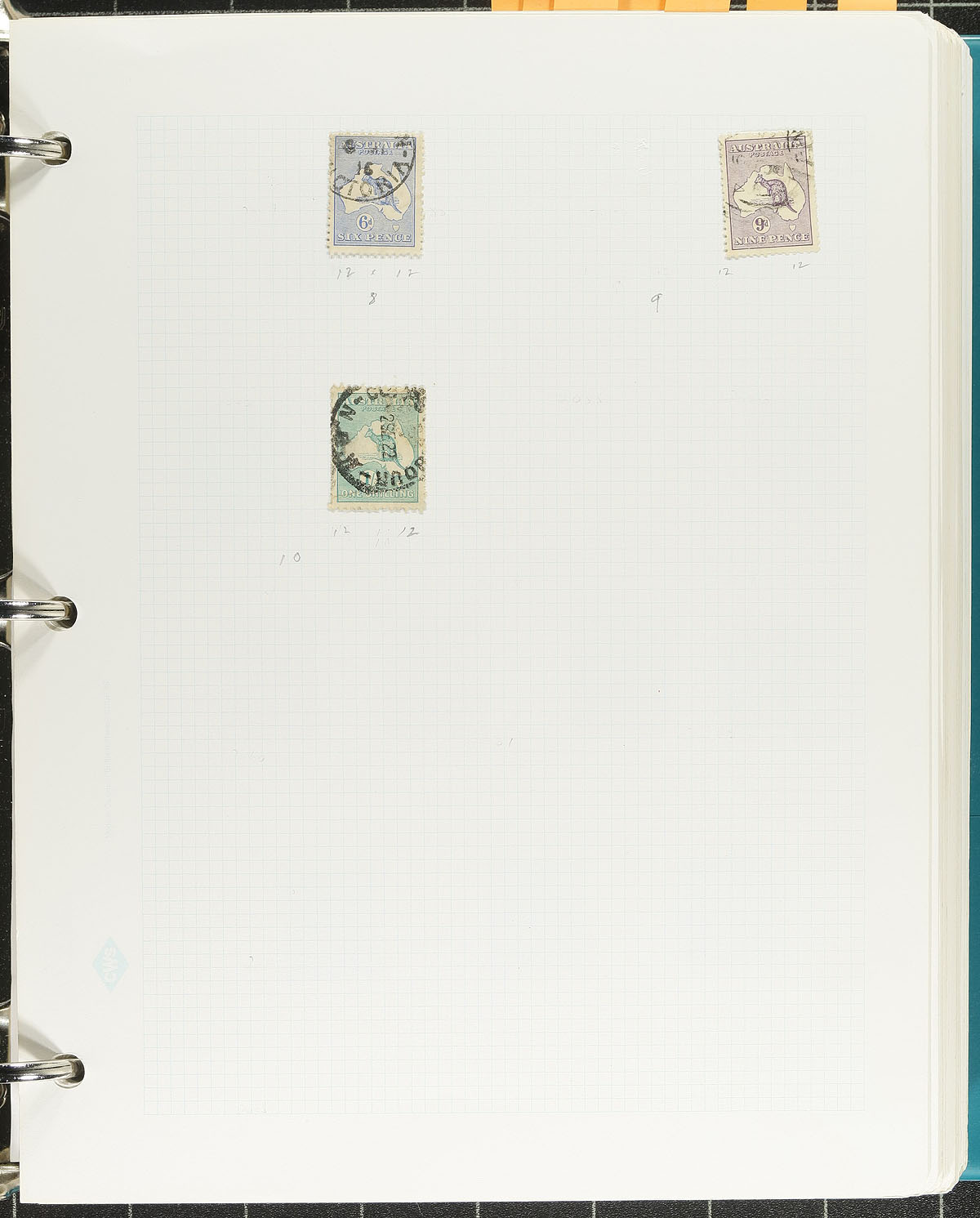 Nice collection of primarily used Australia. 1913-1999, containing roughly 1,500 stamps on over 85 homemade pages housed in a thick binder. This well organized collection generally ranges from Scott #1/1746. including a good selection of used Kangaroos with #s 5, 6 (x2), 8-10. 38-39, 42, 45-52, along with KGV Heads, several sets and partial sets, and a small selection of back of the book material. The collection also includes a few perforation varieties, shades, and a few mint stamps (mostly gutter pairs from the 1980's onwards). A spot check indicated some material cataloguing $15 and up, with the owner's 2001 Sedona retail catalogue value for the collection totaling $1,492.00 (US$). A nice lot for Australia or British Commonwealth collectors, overall fine to very fine. Estimate =