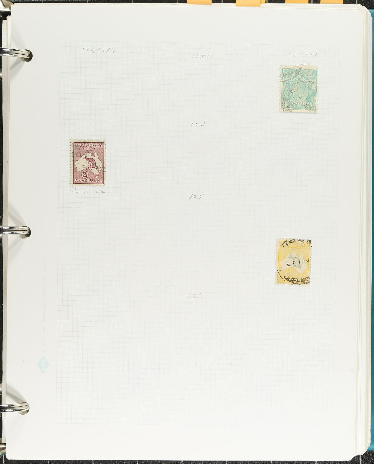 Nice collection of primarily used Australia. 1913-1999, containing roughly 1,500 stamps on over 85 homemade pages housed in a thick binder. This well organized collection generally ranges from Scott #1/1746. including a good selection of used Kangaroos with #s 5, 6 (x2), 8-10. 38-39, 42, 45-52, along with KGV Heads, several sets and partial sets, and a small selection of back of the book material. The collection also includes a few perforation varieties, shades, and a few mint stamps (mostly gutter pairs from the 1980's onwards). A spot check indicated some material cataloguing $15 and up, with the owner's 2001 Sedona retail catalogue value for the collection totaling $1,492.00 (US$). A nice lot for Australia or British Commonwealth collectors, overall fine to very fine. Estimate =