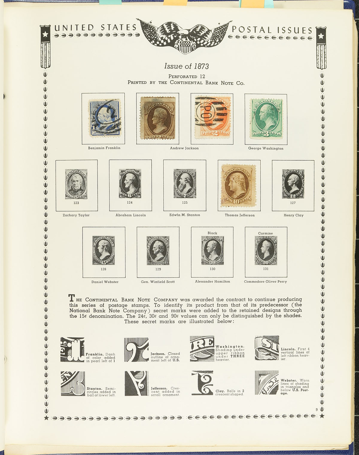 Collection of primarily used United States, 1853-1987, containing over 1,500 stamps in two volumes. The first volume contains Minkus album pages in a Harris album, with roughly 1,300 used stamps ranging from Scott #11A/1682, containing mostly pre-1920 issues, along with coils, precancels, and a few back of the book issues. The second volume contains a variety of mint stamps from the 1980's, along with souvenir cards. A spot check indicated a few stamps cataloguing $10 and up, with face value estimated in the $75 to $100 range. A good starter collection, noting a few faults with some of the early issues. Estimate =