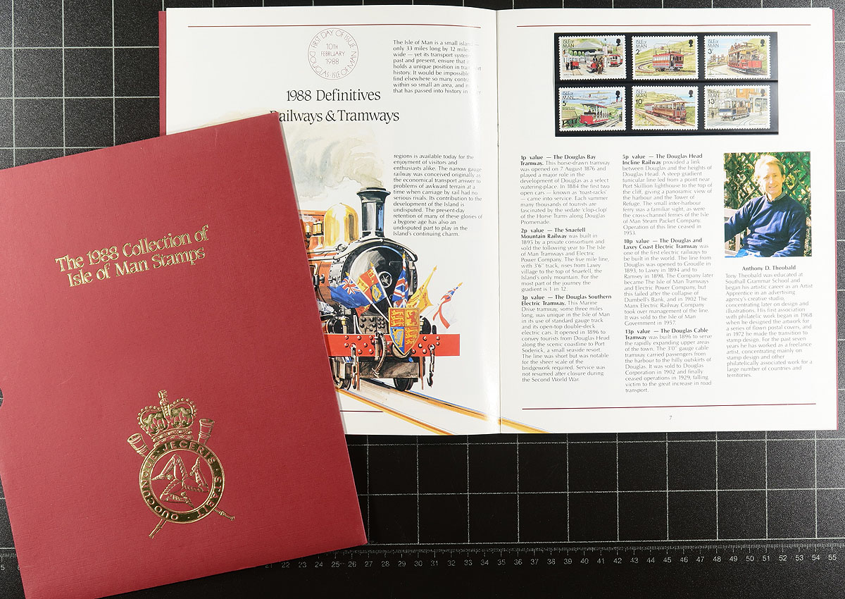 Nice group of Isle of Man annual collections, 1988-1997, all in very nice folders, ranging from Scott #347/765 (only missing a few issues from 1992), including strips, souvenir sheets, and sheetlets. A nice clean lot for all collectors. 2026 Scott US$415.00 =