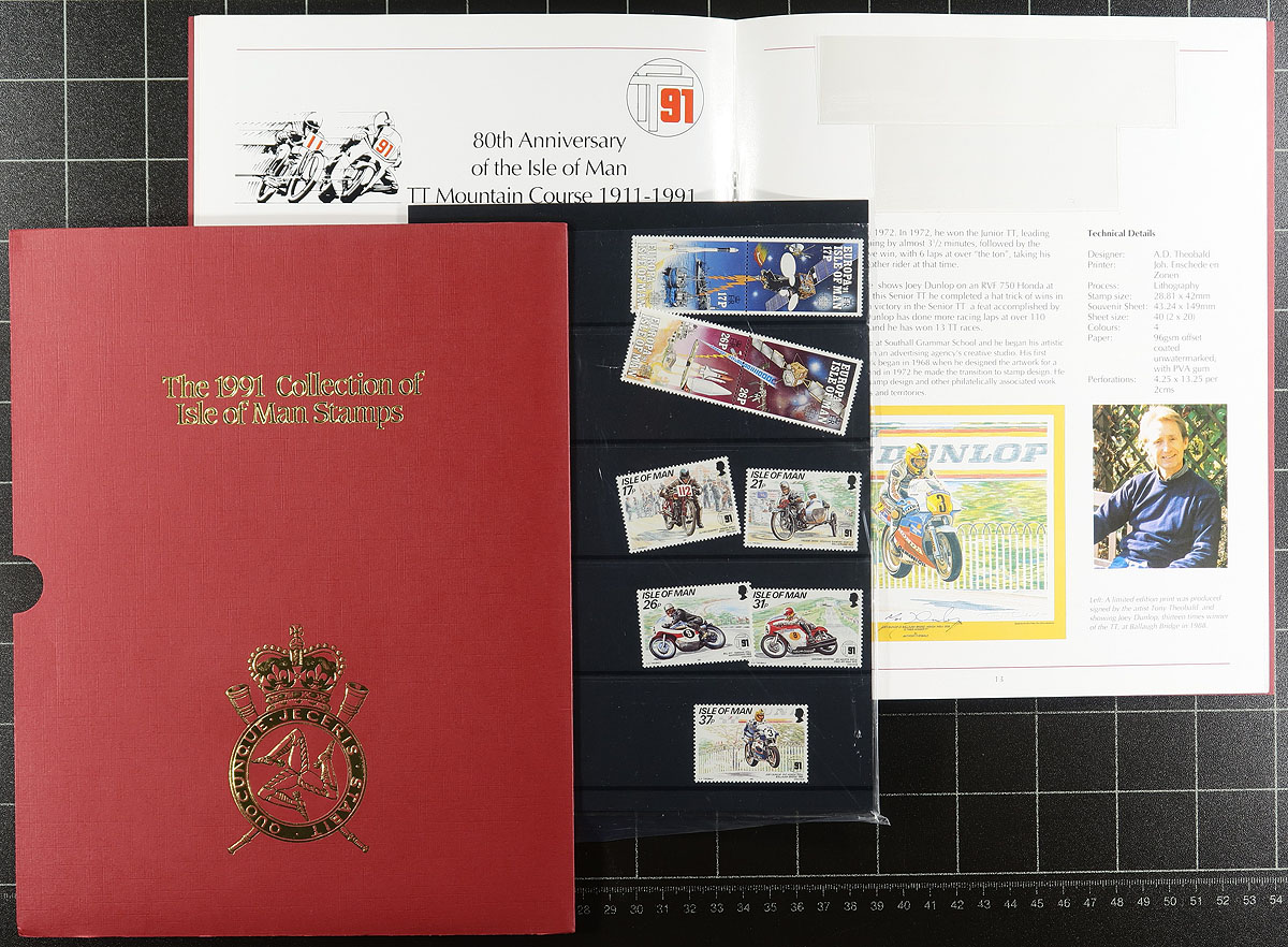 Nice group of Isle of Man annual collections, 1988-1997, all in very nice folders, ranging from Scott #347/765 (only missing a few issues from 1992), including strips, souvenir sheets, and sheetlets. A nice clean lot for all collectors. 2026 Scott US$415.00 =