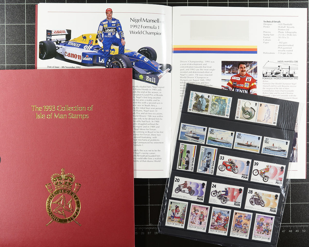Nice group of Isle of Man annual collections, 1988-1997, all in very nice folders, ranging from Scott #347/765 (only missing a few issues from 1992), including strips, souvenir sheets, and sheetlets. A nice clean lot for all collectors. 2026 Scott US$415.00 =
