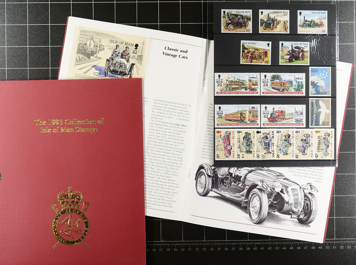 Nice group of Isle of Man annual collections, 1988-1997, all in very nice folders, ranging from Scott #347/765 (only missing a few issues from 1992), including strips, souvenir sheets, and sheetlets. A nice clean lot for all collectors. 2026 Scott US$415.00 =