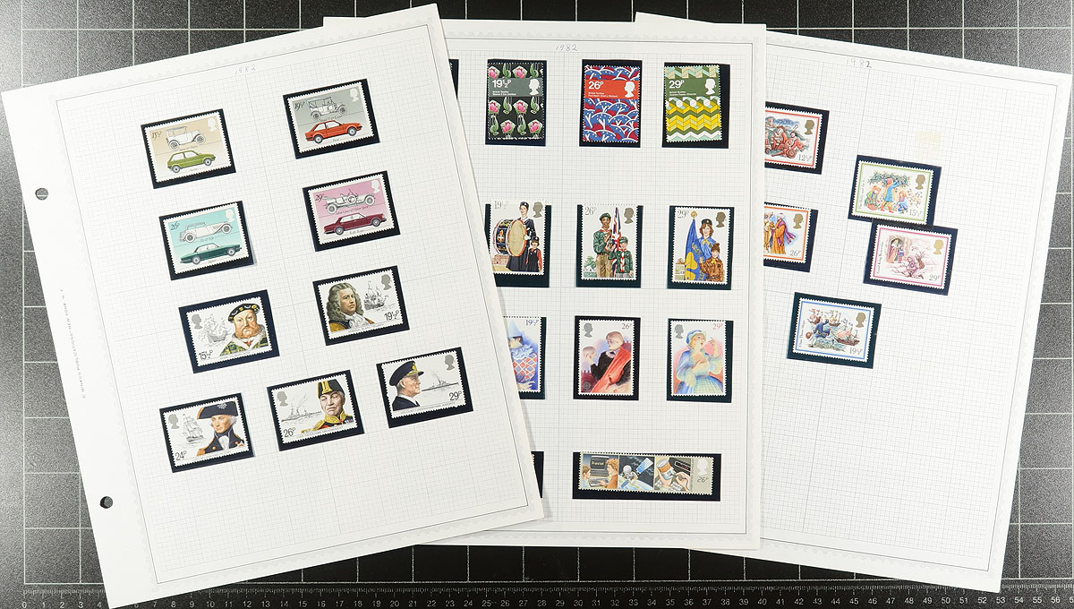 Collection of never hinged Great Britain, 1971-1987, containing roughly 500 different stamps in hingeless mounts on many homemade pages, and 2 stockpages. This neatly organized collection ranges from Scott #648/1200, including a few blocks and gutter pairs and sets. Face value alone totals £155.00. A nice clean lot with a variety of purposes, overall very fine. Estimate =