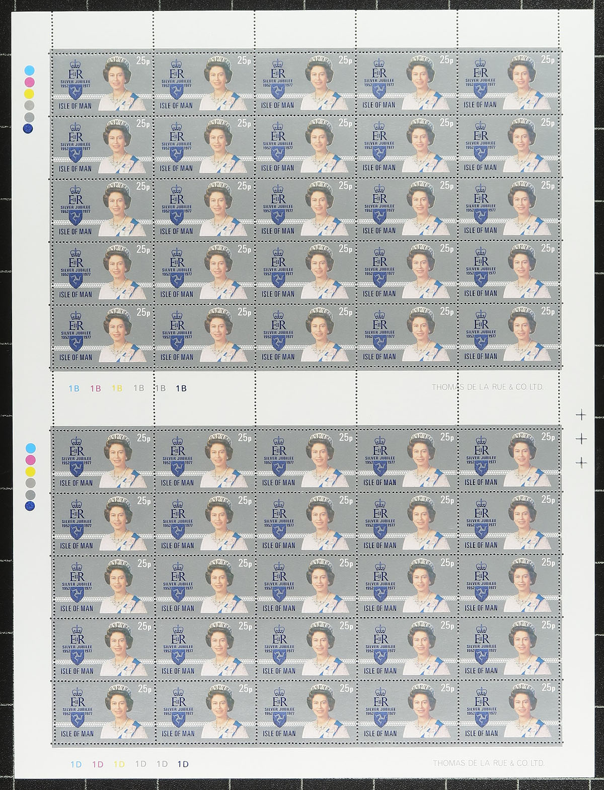 Group of never hinged Channel Islands complete sheets, 1970s-1980s, containing 20 sheets from Isle of Man, and 15 sheets from Guernsey in two sheet files. A spot check indicated gutter sheets, along with traffic light blocks, with a few sheets cataloguing $20 and up. Owner's older catalogue value for the collection totals US$405.00. A few edge faults with a few Guernsey sheets due to the size of the sheets. A nice lot for the sheet collector, overall fine to very fine. Estimate =