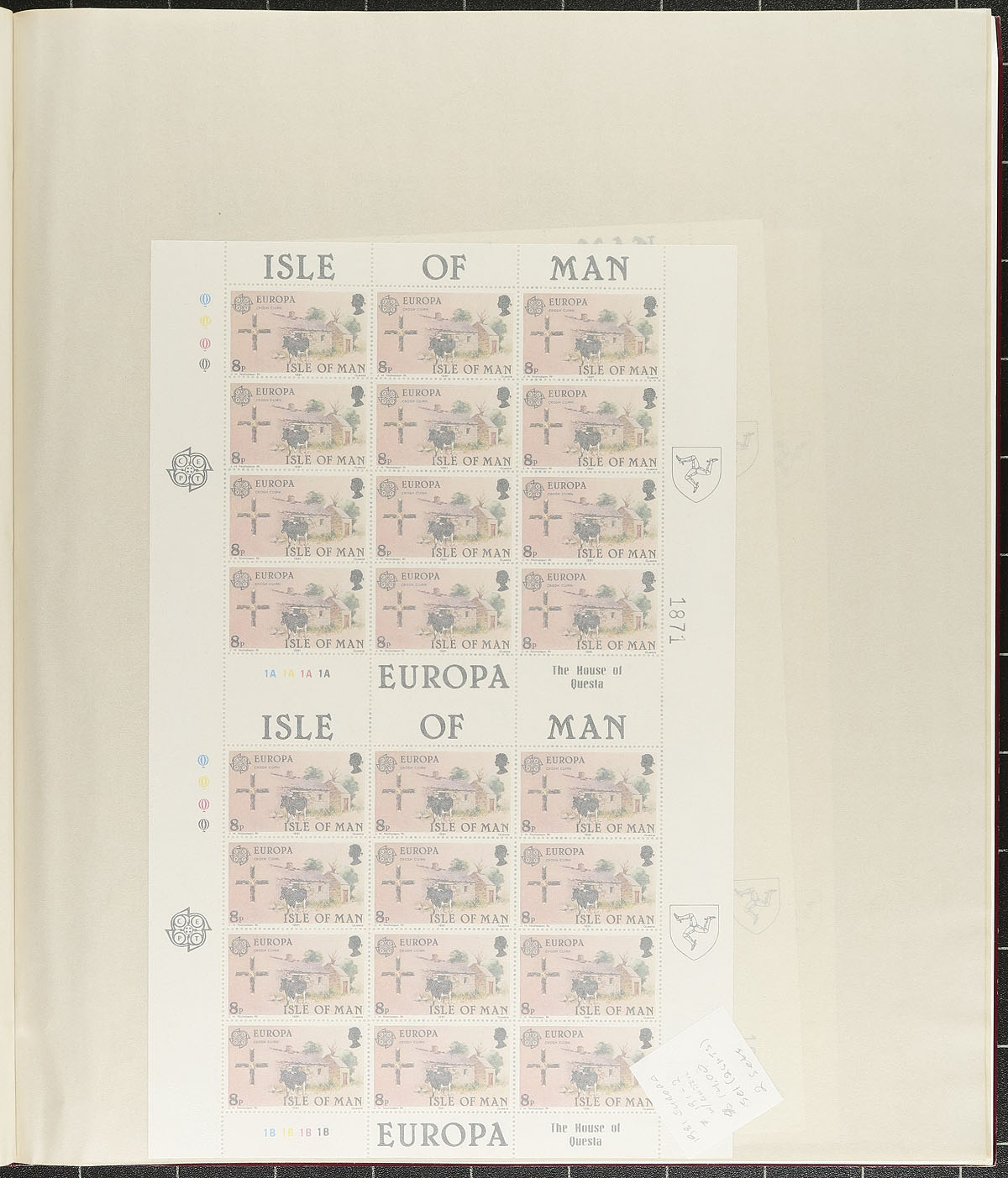 Group of never hinged Channel Islands complete sheets, 1970s-1980s, containing 20 sheets from Isle of Man, and 15 sheets from Guernsey in two sheet files. A spot check indicated gutter sheets, along with traffic light blocks, with a few sheets cataloguing $20 and up. Owner's older catalogue value for the collection totals US$405.00. A few edge faults with a few Guernsey sheets due to the size of the sheets. A nice lot for the sheet collector, overall fine to very fine. Estimate =