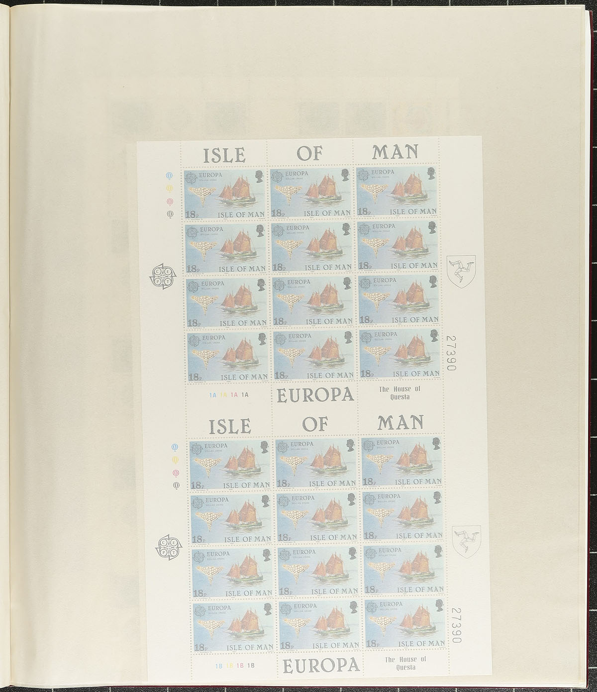 Group of never hinged Channel Islands complete sheets, 1970s-1980s, containing 20 sheets from Isle of Man, and 15 sheets from Guernsey in two sheet files. A spot check indicated gutter sheets, along with traffic light blocks, with a few sheets cataloguing $20 and up. Owner's older catalogue value for the collection totals US$405.00. A few edge faults with a few Guernsey sheets due to the size of the sheets. A nice lot for the sheet collector, overall fine to very fine. Estimate =