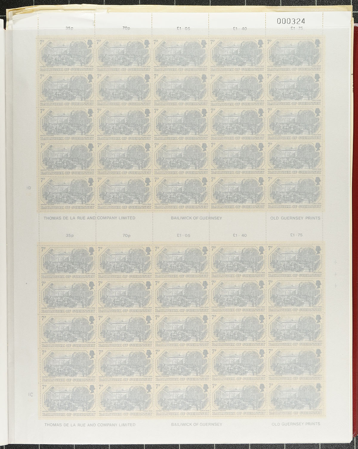 Group of never hinged Channel Islands complete sheets, 1970s-1980s, containing 20 sheets from Isle of Man, and 15 sheets from Guernsey in two sheet files. A spot check indicated gutter sheets, along with traffic light blocks, with a few sheets cataloguing $20 and up. Owner's older catalogue value for the collection totals US$405.00. A few edge faults with a few Guernsey sheets due to the size of the sheets. A nice lot for the sheet collector, overall fine to very fine. Estimate =