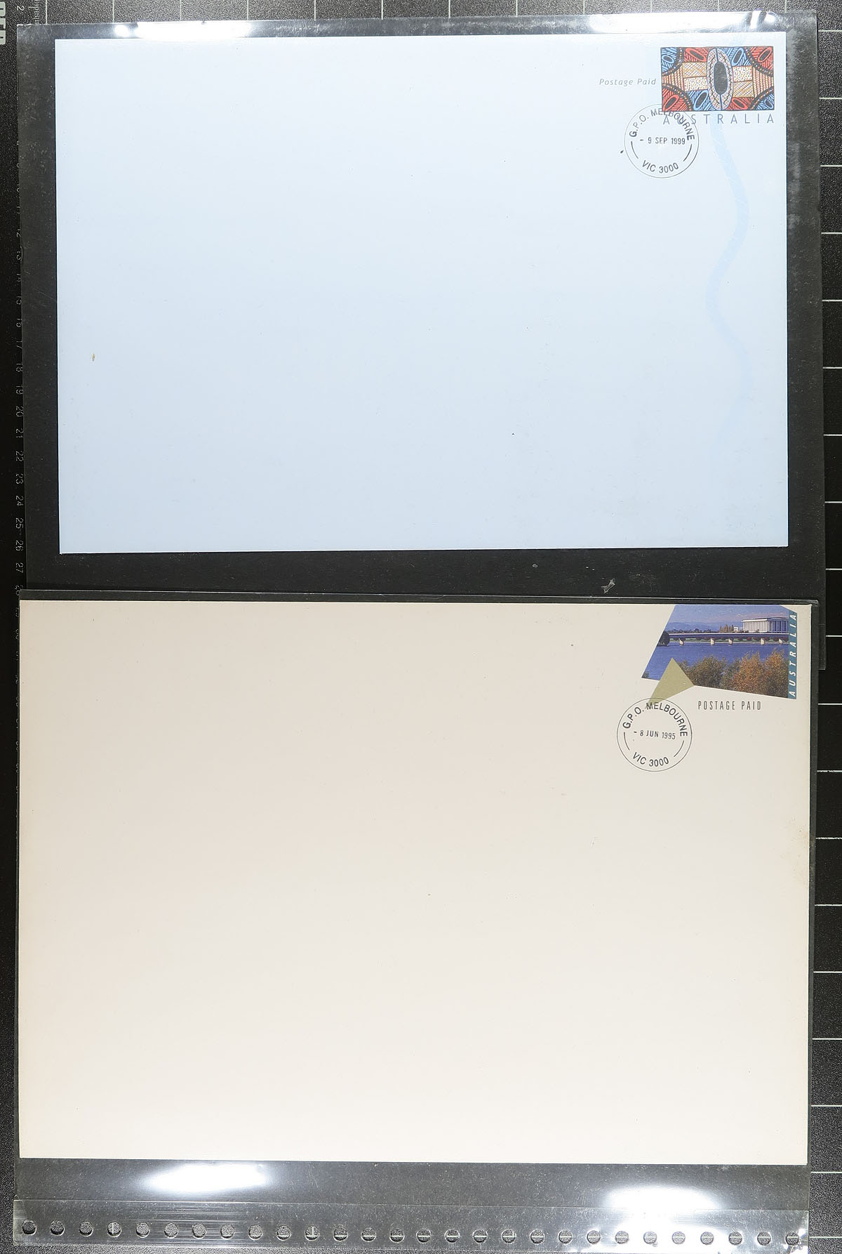 Postal Stationery. Attractive group of roughly 225 primarily unused Australia postal stationery items, generally ranging from the early 1980's to the early 2000's. We note denominations ranging from 20c to 50c, along with a few "Postage Paid" examples, including a mint and a first day of use example for some issues. We estimate face value in the $50 to $100 range. A nice clean lot for the postal stationery or Australia specialist. Estimate =