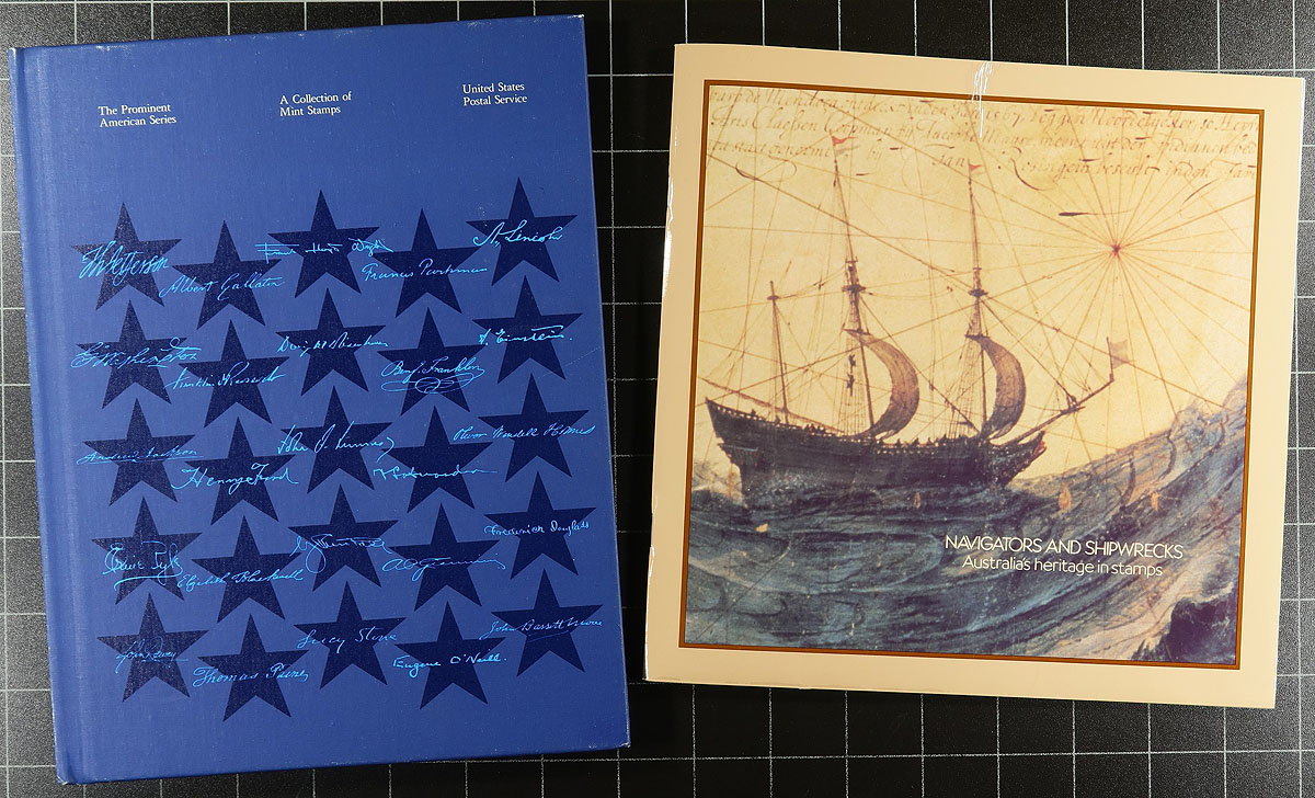 Group of worldwide annual and thematic collections, 1980's-2000's, containing 24 in total including Ireland annual collections for 1991-1992, 1994-1995; Hong Kong 1995 annual collection; China 2005 annual collection; Great Britain Royal Mail Special Stamps- Book 11 and 13; along with thematic collections from Canada, United States, Channel Islands and British Commonwealth countries, and a few more. These collections would originally retail for several hundreds of dollars in total. Nice and clean with many never hinged sets and souvenir sheets. Estimate =