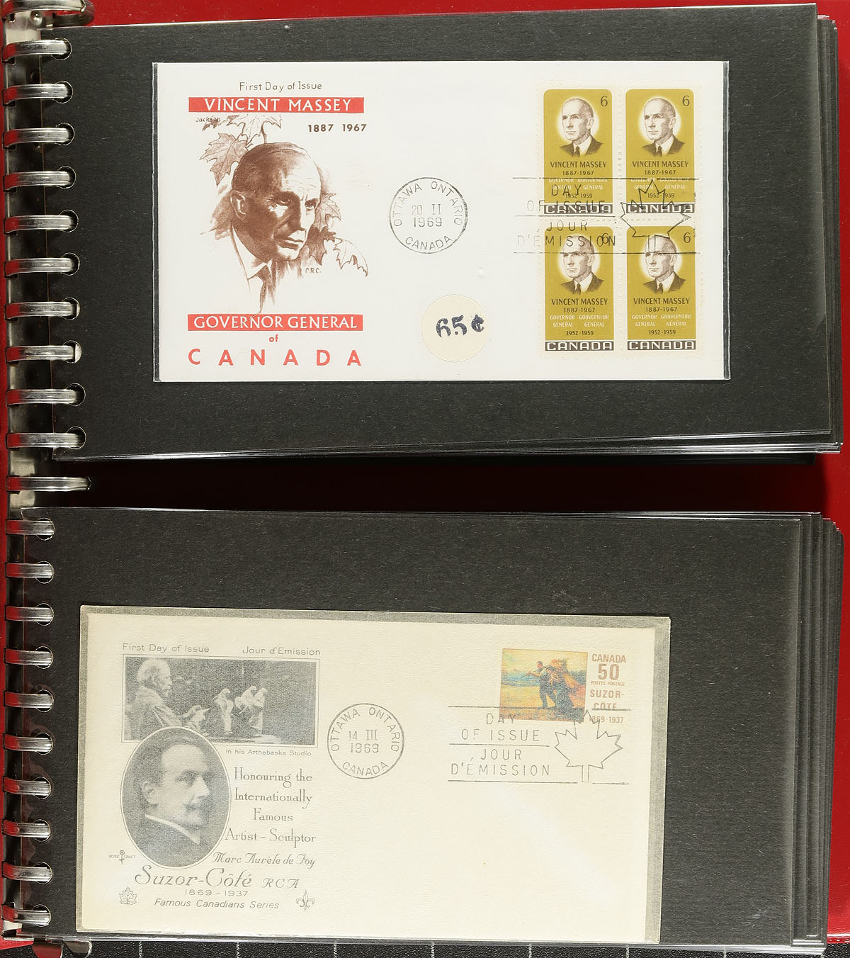 Lovely collection of private cachet Canada first day covers, 1962-1972, containing roughly 225 covers in 3 first day cover albums. We note primarily single frankings, along with a few blocks, noting some issues have both, and includes cachet makers Caneco, ARC, Rose Craft and Cole, with a few issues having a few different cachets. A lovely collection as most covers are in sparkling condition, ideal for collectors and dealers alike. Estimate =