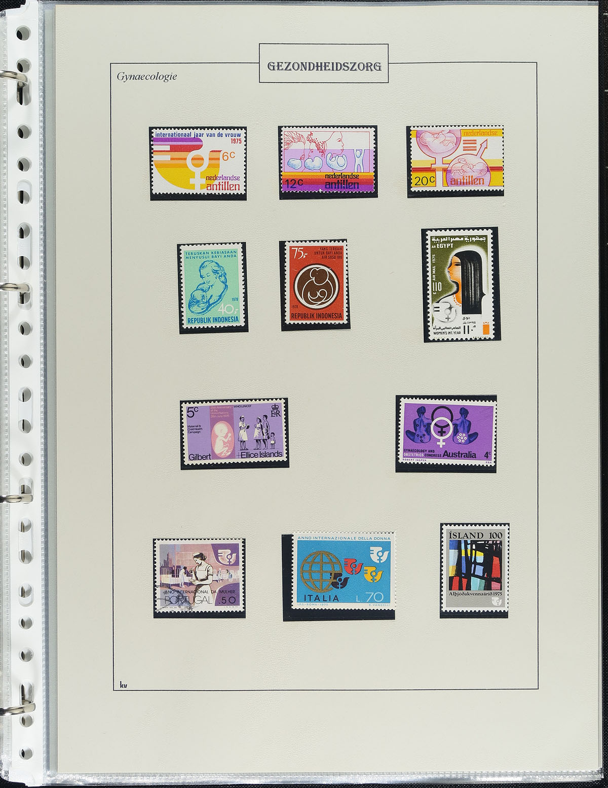 Medicine / Health Topical Collection. A lovely topical collection relating to health care in 3 volumes all with slipcases. This neatly organized collection contains many hundreds of items, including mint single and stamp sets, first day covers, souvenir sheets, all neatly displayed in an exhibit style format. The text is in German, but easily translatable through modern technology, noting a wide variety of health related topics including pharmacology, modern medicine, women's health, important figures and scientists, and more. A lovely collection that should be expanded and would make a lovely exhibit at any local or national show. Estimate =