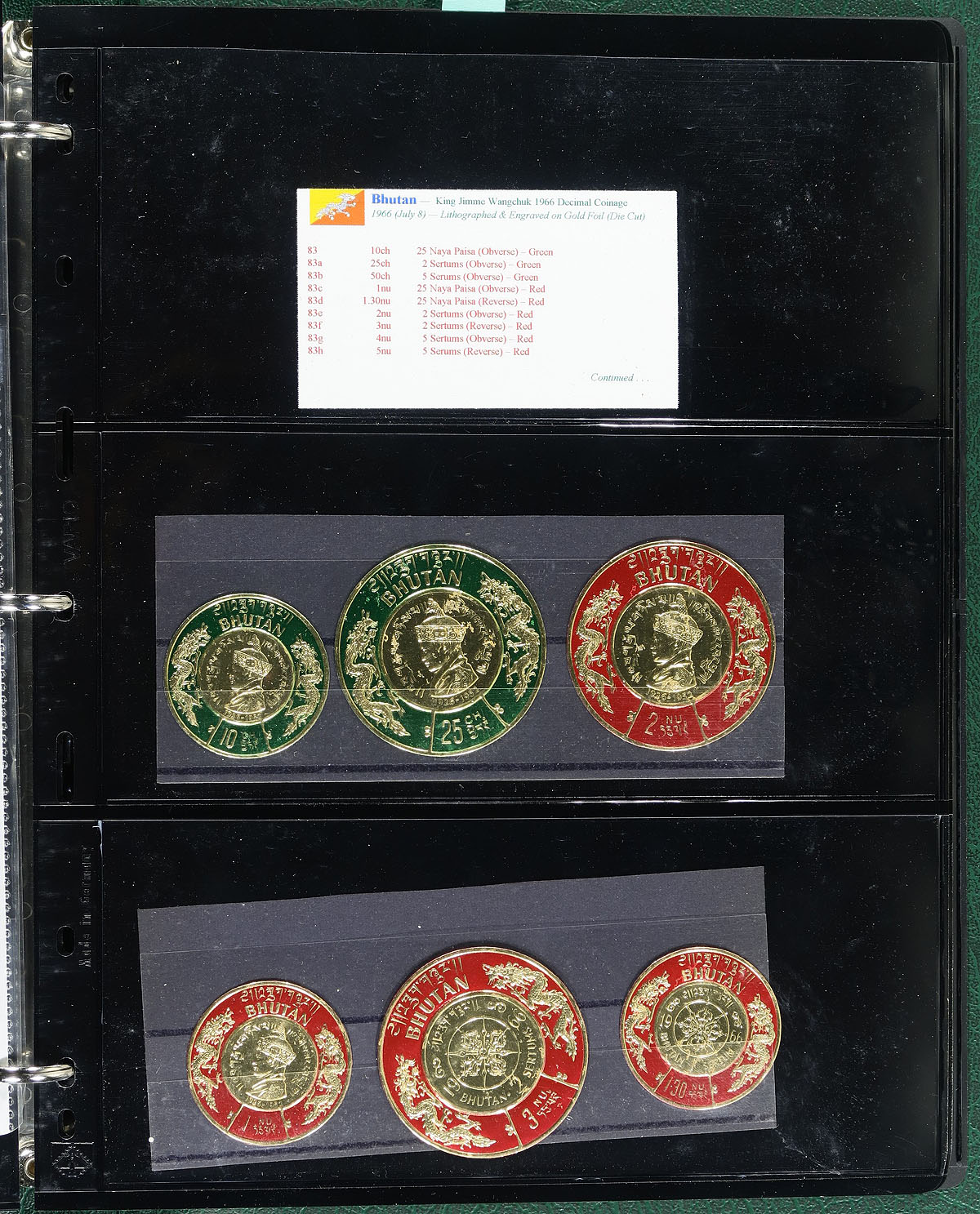 "Coins on Stamps" Part A. Lovely comprehensive topical collection that will be offered in 14 parts in this sale, each lot held in a matching Lighthouse binder with slipcases, this being "PART A" containing countries ranging from A (Aden) to B (Bhutan), containing a few hundred items with representation from 27 issuing countries or states. The collection contains mint or used singles, sets, souvenir sheets, first day covers, sheetlets and more, along with well researched text detailing the relationship between philately and numismatics, with each philatelic item well identified by Scott number along with additional printing information. Just a few of the better items in this volume with Scott #s Australia (New South Wales) 44a (used, c.v. $85), Australia (Tasmania) AR22 (manuscript cancel, $350), along with a few singles and sets cataloguing $15 and up. Owner's older Scott catalogue value for the binder totals US$1,177.00. An exhibit worthy collection, and very fine. Estimate =
