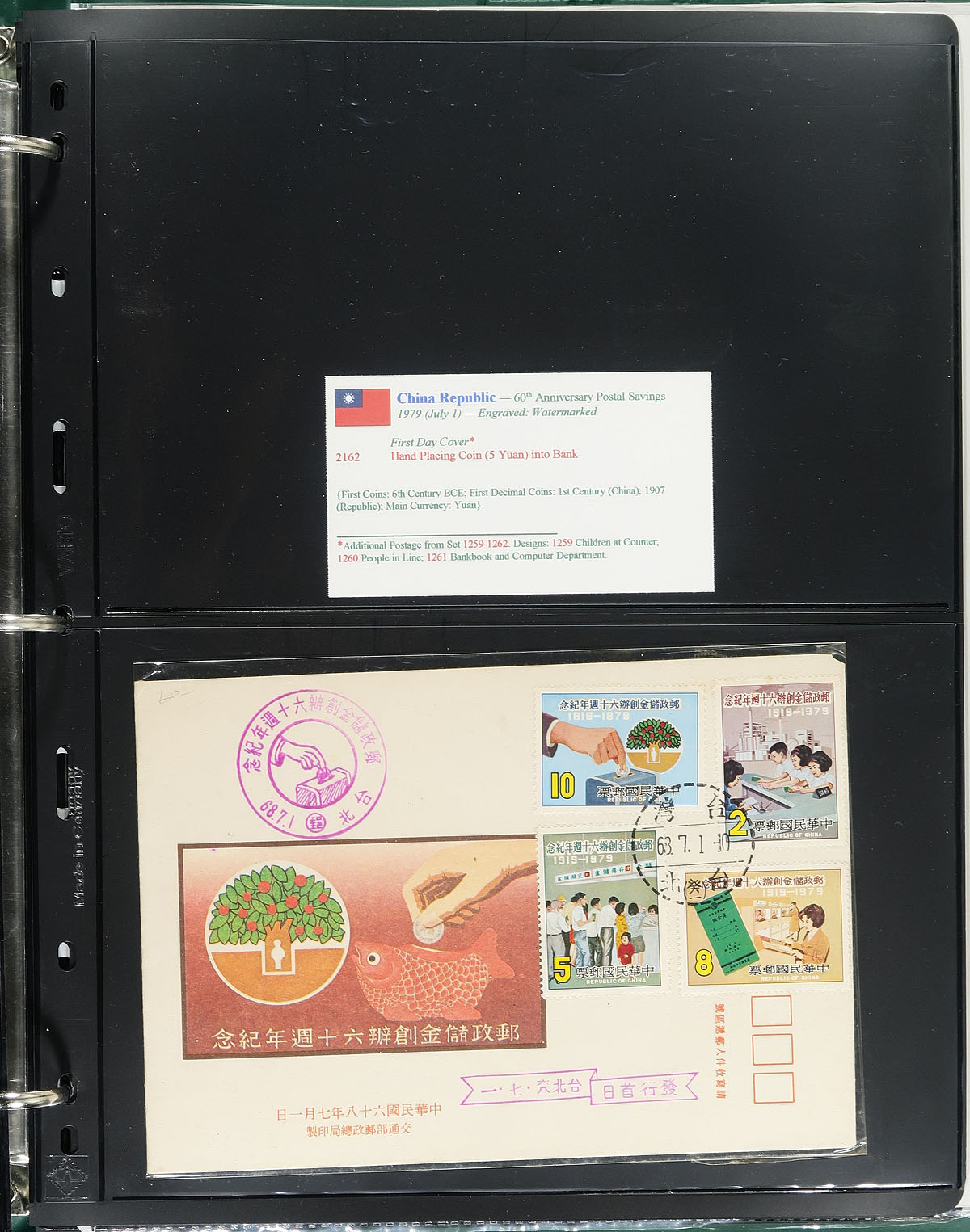 "Coins on Stamps" Part B. A lovely comprehensive topical collection containing countries ranging from B (Bolivia) to C (Colombia), containing a few hundred items with representation from 18 issuing countries or states. The collection contains mint or used singles, sets, souvenir sheets, first day covers, sheetlets and more, along with well researched text detailing the relationship between philately and numismatics, with each philatelic item well identified by Scott number along with additional printing information. Just a few of the better items in this volume with Scott #s China (Szechwan Province) F1, F3 (mint no gum $238 total), People's Republic of China 124-127 (mh, no gum, $67 total), along with a few items cataloguing $15 and up. Owner's older Scott catalogue value for the binder totals US$802.00. An exhibit worthy collection, and very fine. Estimate =