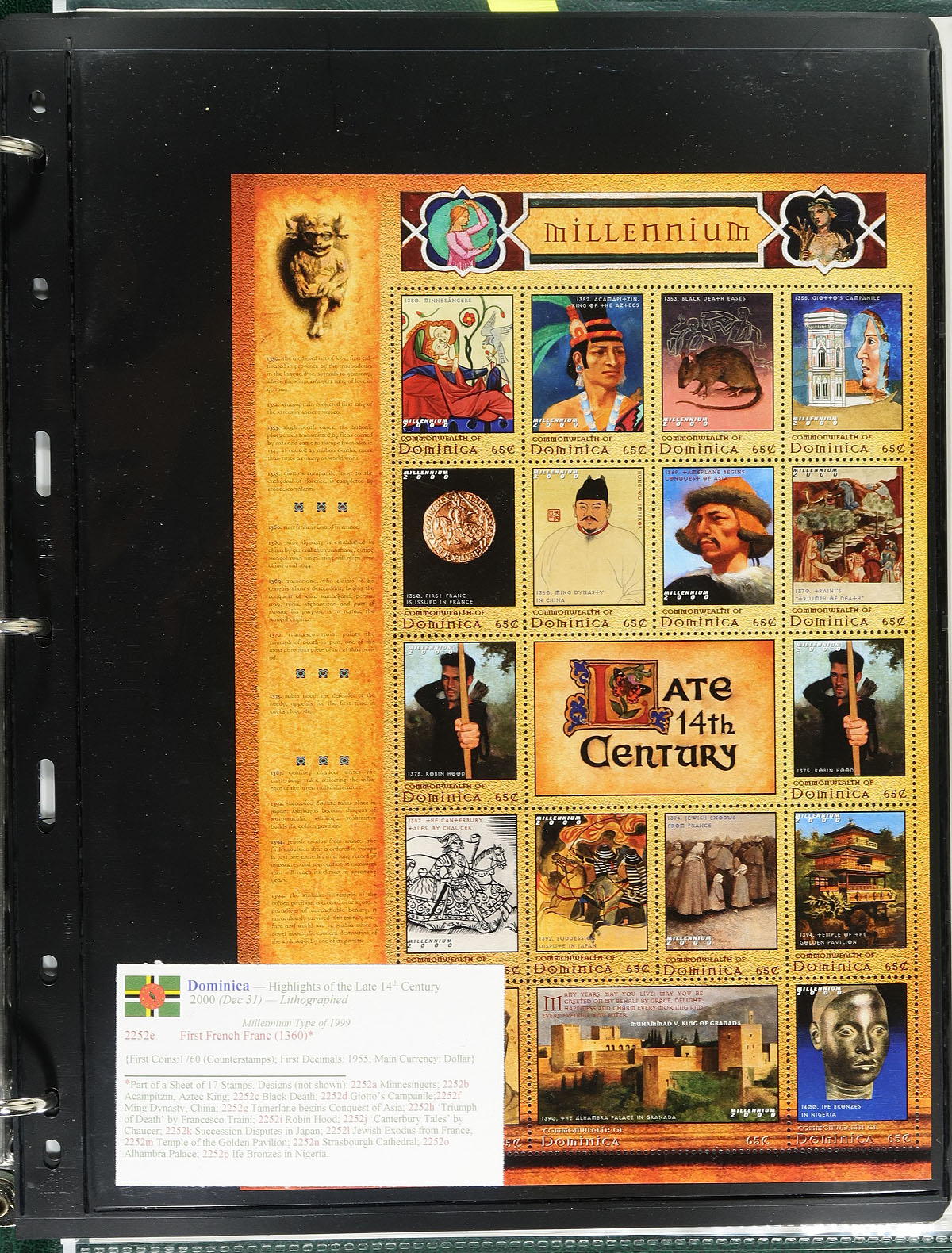 "Coins on Stamps" PART C. Lovely comprehensive topical collection containing countries ranging from C (Congo Peoples Republic) to E (Ecuador), containing a few hundred items with representation from 16 issuing countries or states. The collection contains mint or used singles, sets, souvenir sheets, first day covers, sheetlets and more, along with well researched text detailing the relationship between philately and numismatics, with each philatelic item well identified by Scott number along with additional printing information. Just a few of the better items in this volume with Scott #s Crete 92 (mh, $97), 118 (used, $100), Cyprus 168-182 (lh, $130 total), 183-197 (lh, $152 total), along with a few items cataloguing $15 and up. Owner's older Scott catalogue value for the binder totals US$1,282.00. An exhibit worthy collection, and very fine. Estimate =