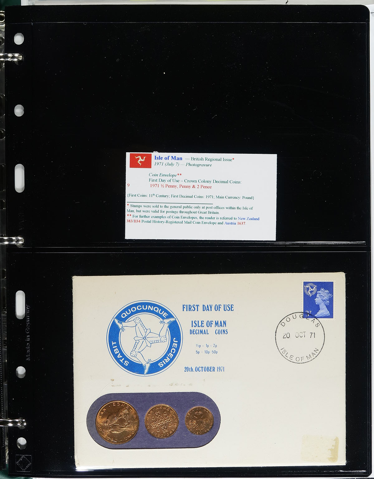 "Coins on Stamps" PART F. Lovely comprehensive topical collection containing countries ranging from I (Ireland) to J (Jordan), containing a few hundred items with representation from 10 issuing countries or states. The collection contains mint or used singles, sets, souvenir sheets, first day covers, sheetlets and more, along with well researched text detailing the relationship between philately and numismatics, with each philatelic item well identified by Scott number along with additional printing information. Just a few of the better items in this volume with Scott #s Israel 1-9 no tabs (nh, $387 total), 16 souvenir sheet (mh, $90), Italy-Trieste EY3 (nh, $80), Jordan 535-537D (mh, $51 total) along with a few items cataloguing $15 and up. Owner's older Scott catalogue value for the binder totals US$1,139.00. An exhibit worthy collection, and very fine. Estimate =