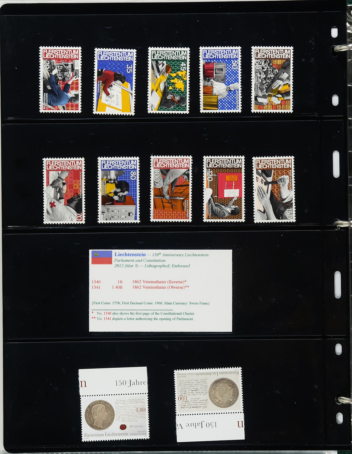 "Coins on Stamps" PART G. Lovely comprehensive topical collection containing countries ranging from K (Kazakhstan) to M (Mali), containing a few hundred items with representation from 18 issuing countries or states. The collection contains mint or used singles, sets, souvenir sheets, first day covers, sheetlets and more, along with well researched text detailing the relationship between philately and numismatics, with each philatelic item well identified by Scott number along with additional printing information. A spot check indicated items cataloguing $10 to $20 and up, with the owner's older Scott catalogue value for the binder totaling US$581.00. An exhibit worthy collection, and very fine. Estimate =