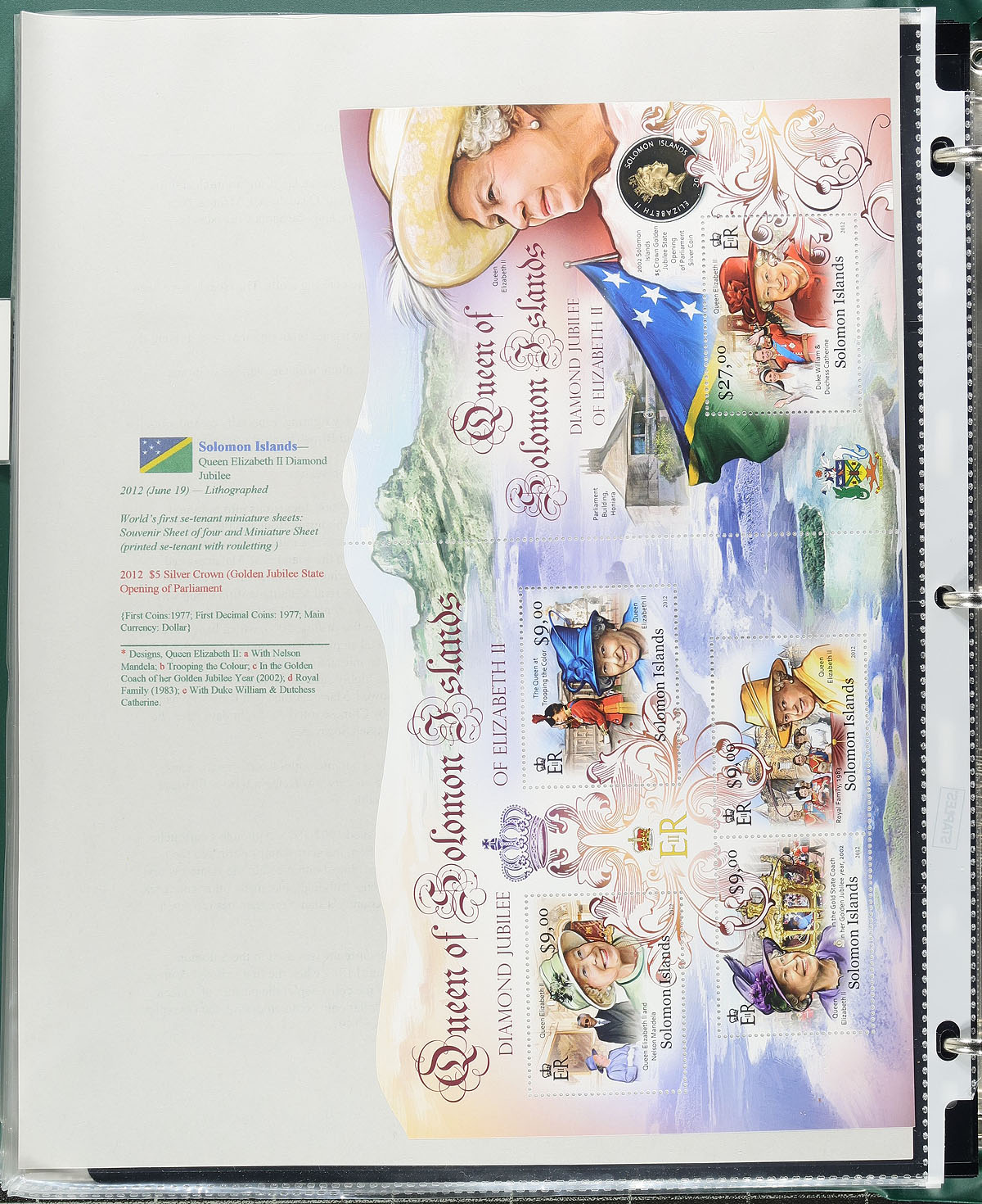 "Coins on Stamps" PART K. Lovely comprehensive topical collection containing countries from S (St. Helena) to S (South Sandwich Islands), containing a few hundred items with representation from 17 issuing countries or states. The collection contains mint or used singles, sets, souvenir sheets, first day covers, sheetlets and more, along with well researched text detailing the relationship between philately and numismatics, with each philatelic item well identified by Scott number along with additional printing information. A spot check indicated items cataloguing $10 to $20 and up, with the owner's older Scott catalogue value for the binder totals US$643.00. An exhibit worthy collection and very fine. Estimate =