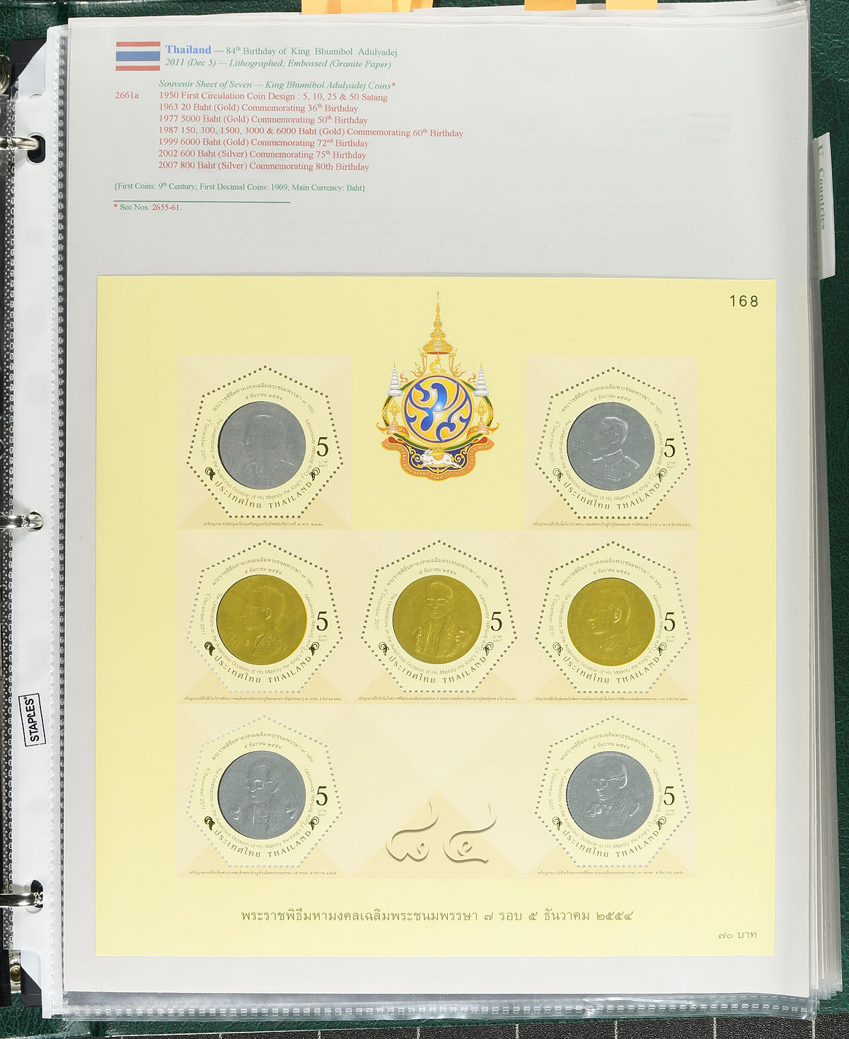 "Coins on Stamps" PART M. Lovely comprehensive topical collection containing countries from T (Tunisia) to U (United Nations), containing a few hundred items with representation from 17 issuing countries or states. The collection contains mint or used singles, sets, souvenir sheets, first day covers, sheetlets and more, along with well researched text detailing the relationship between philately and numismatics, with each philatelic item well identified by Scott number along with additional printing information. A spot check indicated items cataloguing $10 to $20 and up, with the owner's older Scott catalogue value for the binder totals US$773.00. An exhibit worthy collection and very fine. Estimate =