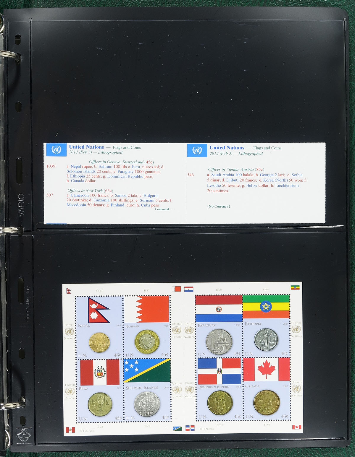 "Coins on Stamps" PART M. Lovely comprehensive topical collection containing countries from T (Tunisia) to U (United Nations), containing a few hundred items with representation from 17 issuing countries or states. The collection contains mint or used singles, sets, souvenir sheets, first day covers, sheetlets and more, along with well researched text detailing the relationship between philately and numismatics, with each philatelic item well identified by Scott number along with additional printing information. A spot check indicated items cataloguing $10 to $20 and up, with the owner's older Scott catalogue value for the binder totals US$773.00. An exhibit worthy collection and very fine. Estimate =