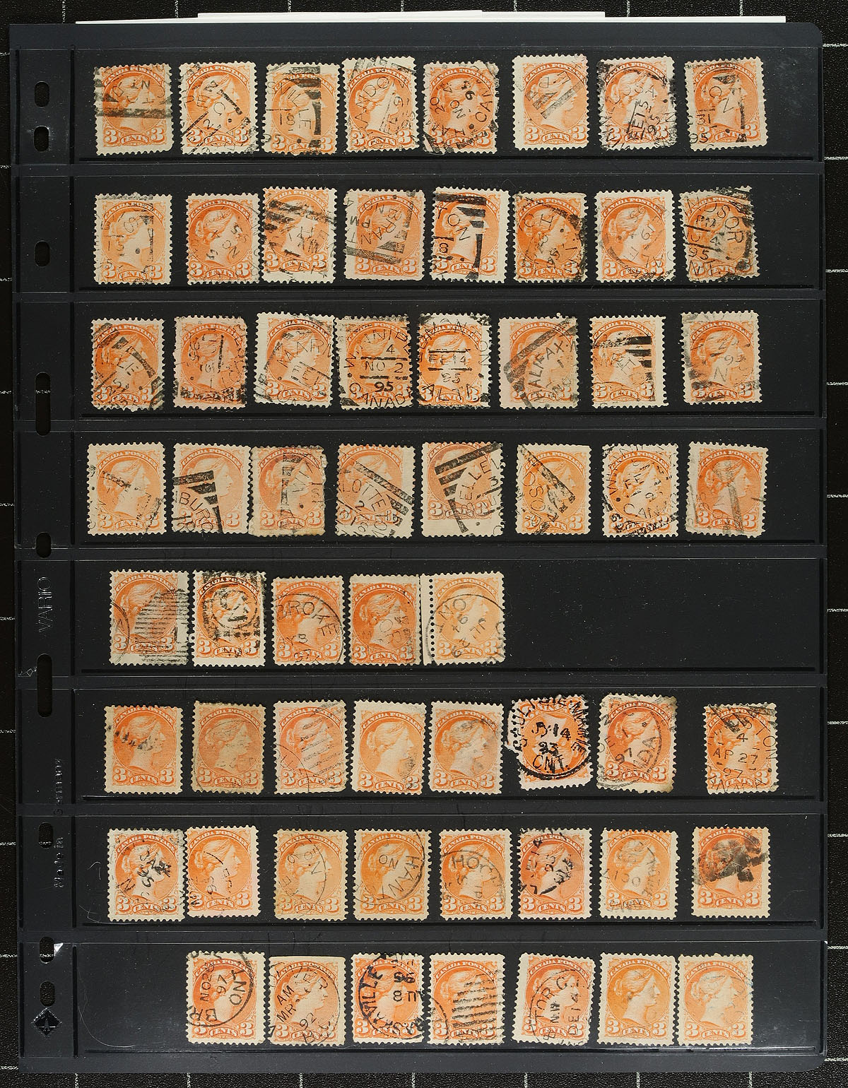 Used Victorian holding of 735x Small Queens to "Maps" including several better shades / postmarks etc. All neatly arranged on stockpages as assembled by a collector many years ago (including an intact 3c Small Queen lot from Bidboard #1467!). Expect the odd fault, but seemingly unchecked for better shades / perfs / postmarks etc. Estimate =