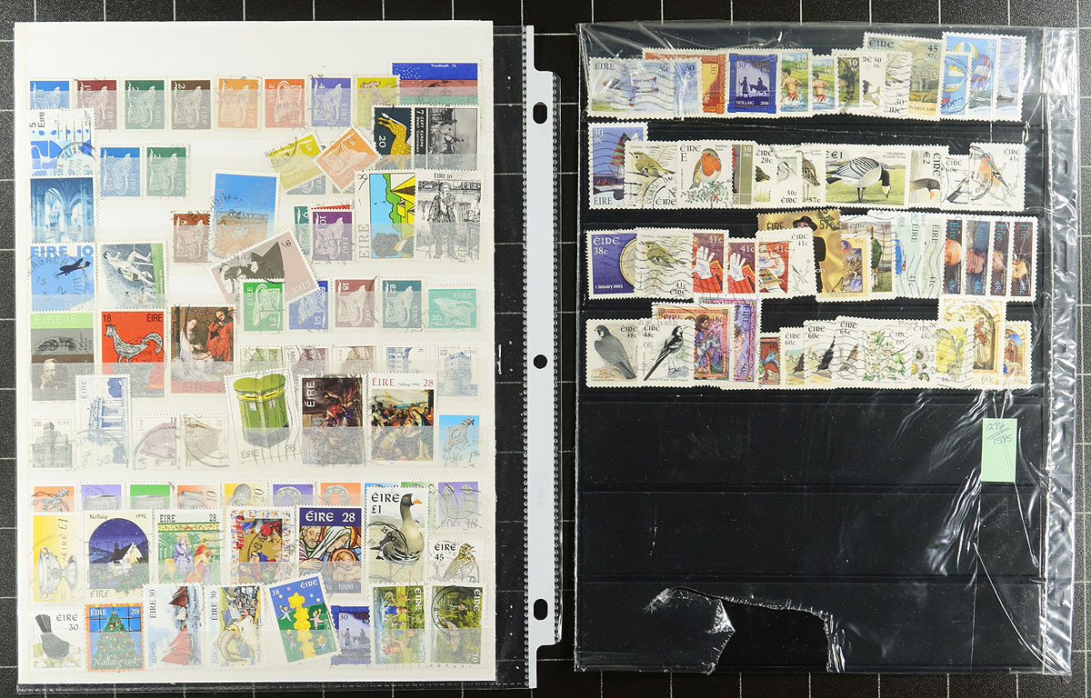 Large collection / accumulation of used Ireland, 1922-2014, containing over 2,000 stamps in roughly 25 stock or album pages. The lot generally ranges from Scott #1/2043, including a selection of self adhesives and back of the book issues. A spot check indicated a few singles and partial sets cataloguing $10 and up, with owner's 2018 Scott catalogue value for the lot totals US$1,428.00, leaving better finds to the dedicated collector. Some duplication encountered for a few issues, overall fine to very fine. Estimate =