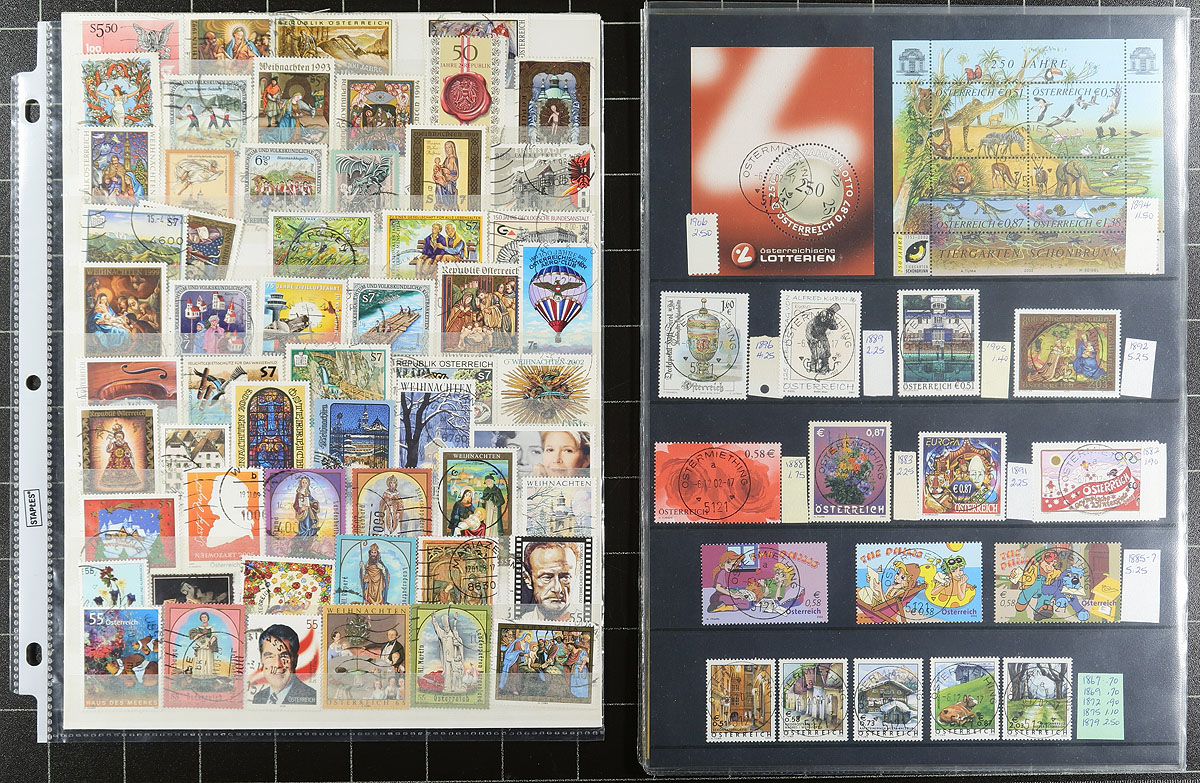 Collection of used Austria, 1858-2014, containing roughly 1,000 stamps in several stockpages. The collection generally ranges from Scott #9/2460, with the vast majority of stamps ranging from the 1950's onwards, noting singles, sets, partial sets, a few souvenir sheets and "back of the book" material. Owner's 2018 Scott catalogue value for the lot totals US$1,628.00, leaving better finds for the dedicated collector. Postmark interest includes cds types, noting a few "socked on the nose" town cancels. A good lot for the used collector, overall fine to very fine. Estimate =